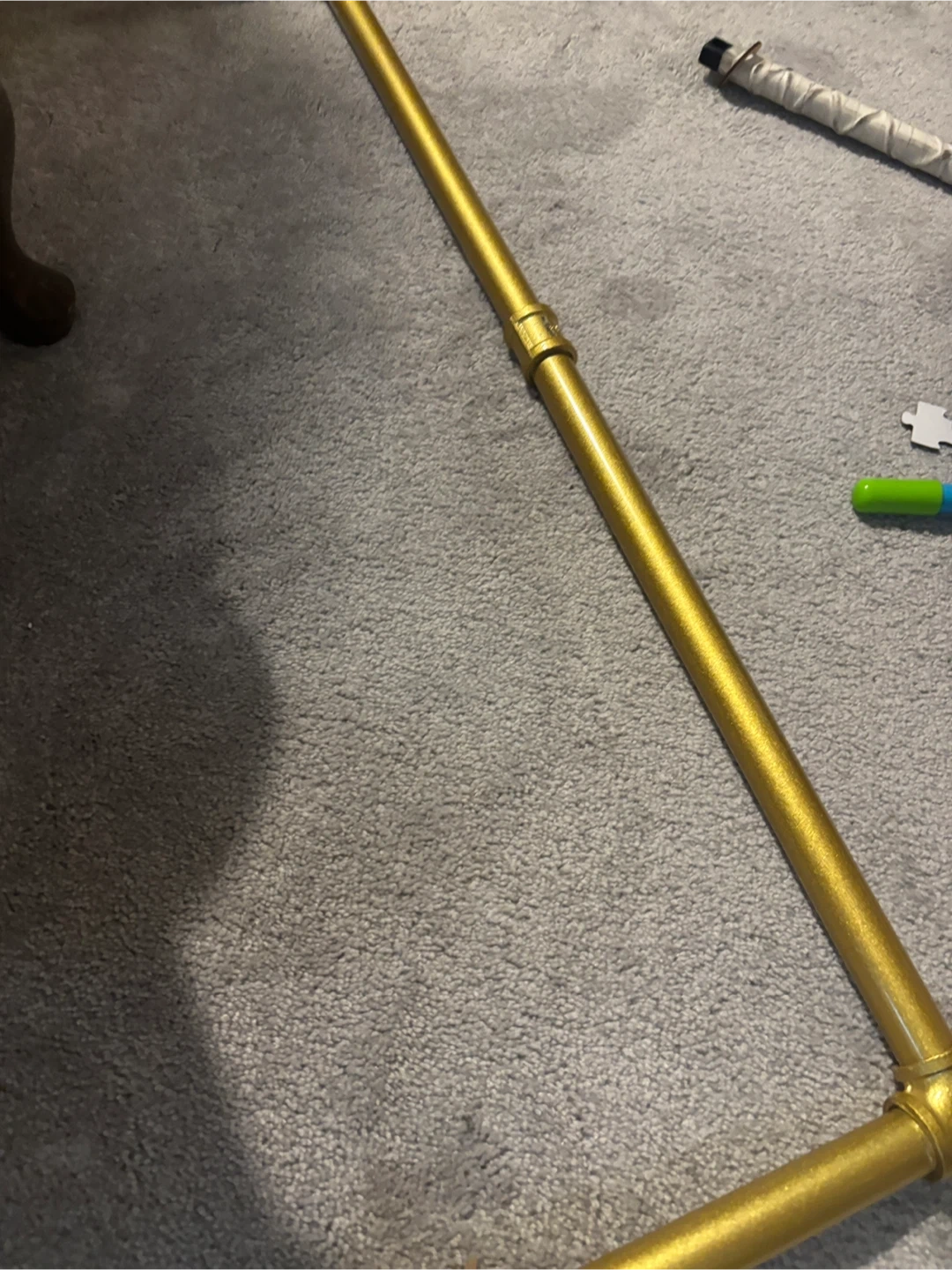 Selling a brand new gold clothes rack! It's still in its original packaging, never been used. Perfect for adding some extra hanging space to your closet or creating a stylish display for your clothes