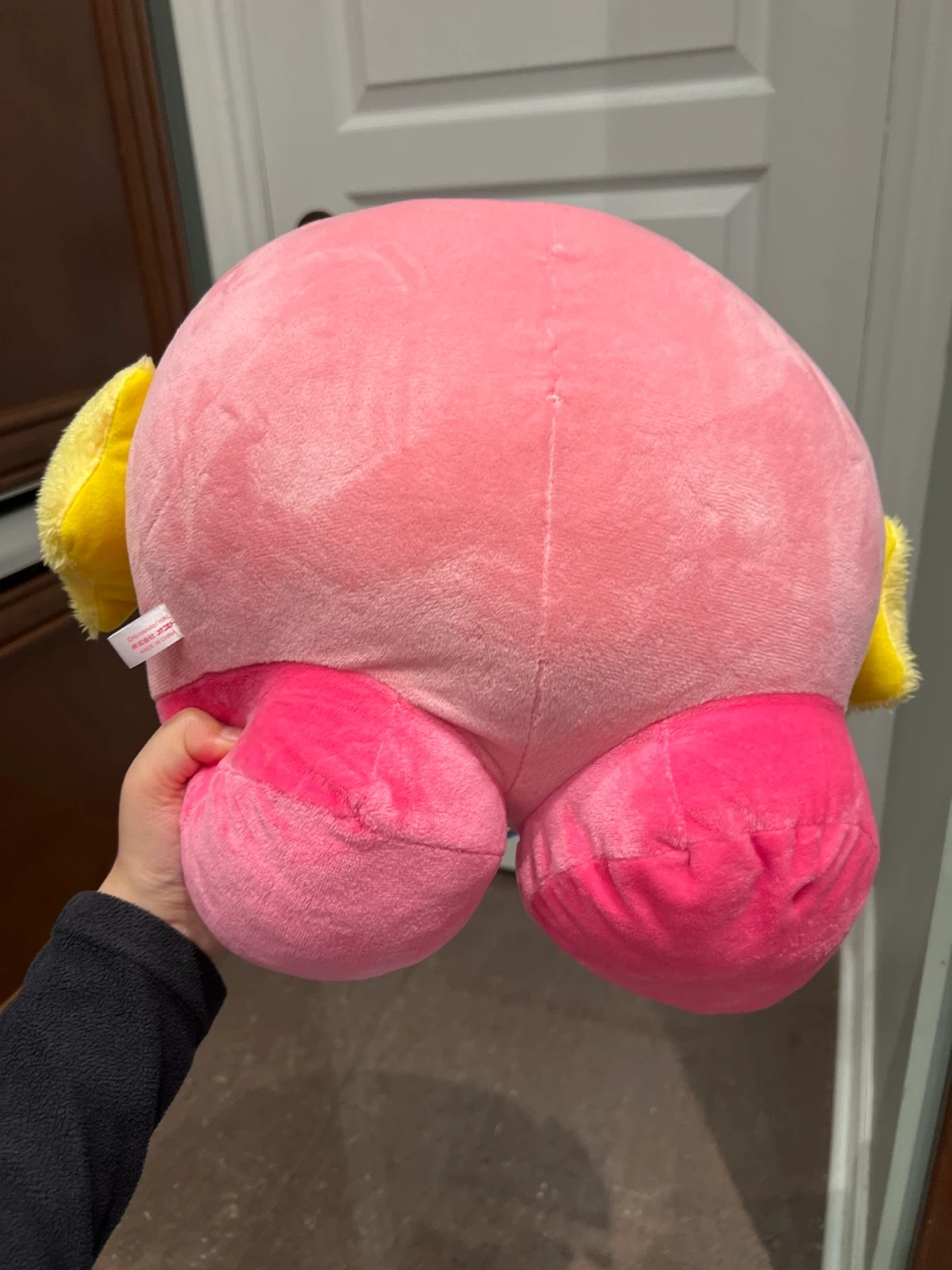 26This is a cute Kirby plush! It is pink with a blue headband and yellow earmuffs. It is in great condition and ready for a new home 35cm