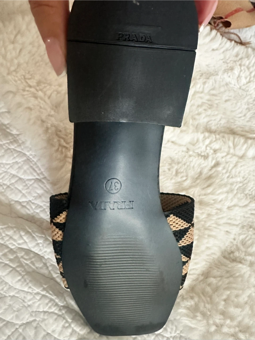 Selling a pair of Prada geometric logo-plaque slides. They are a size 37. These stylish slides feature a unique geometric design and the iconic Prada logo. Originally bought for $995!