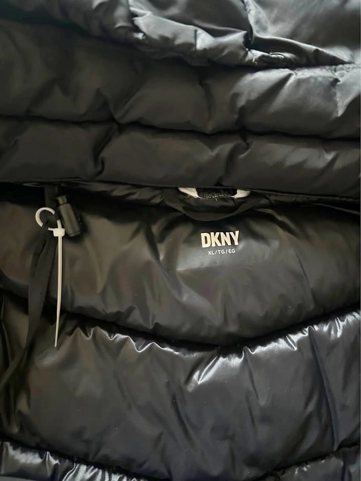 Keep cozy in this DKNY black puffer coat, a stylish essential for chilly days! This coat is in great condition, showing minimal signs of wear. Its sleek design and warm insulation make it perfect for staying comfortable and chic during colder weather. Key Features: * Brand: DKNY * Colour: Black * Style: Puffer Coat * Size: XL * Material: 100% Nylon shell, 100% Nylon lining, 75% Reprove, ask for $120 OBO
