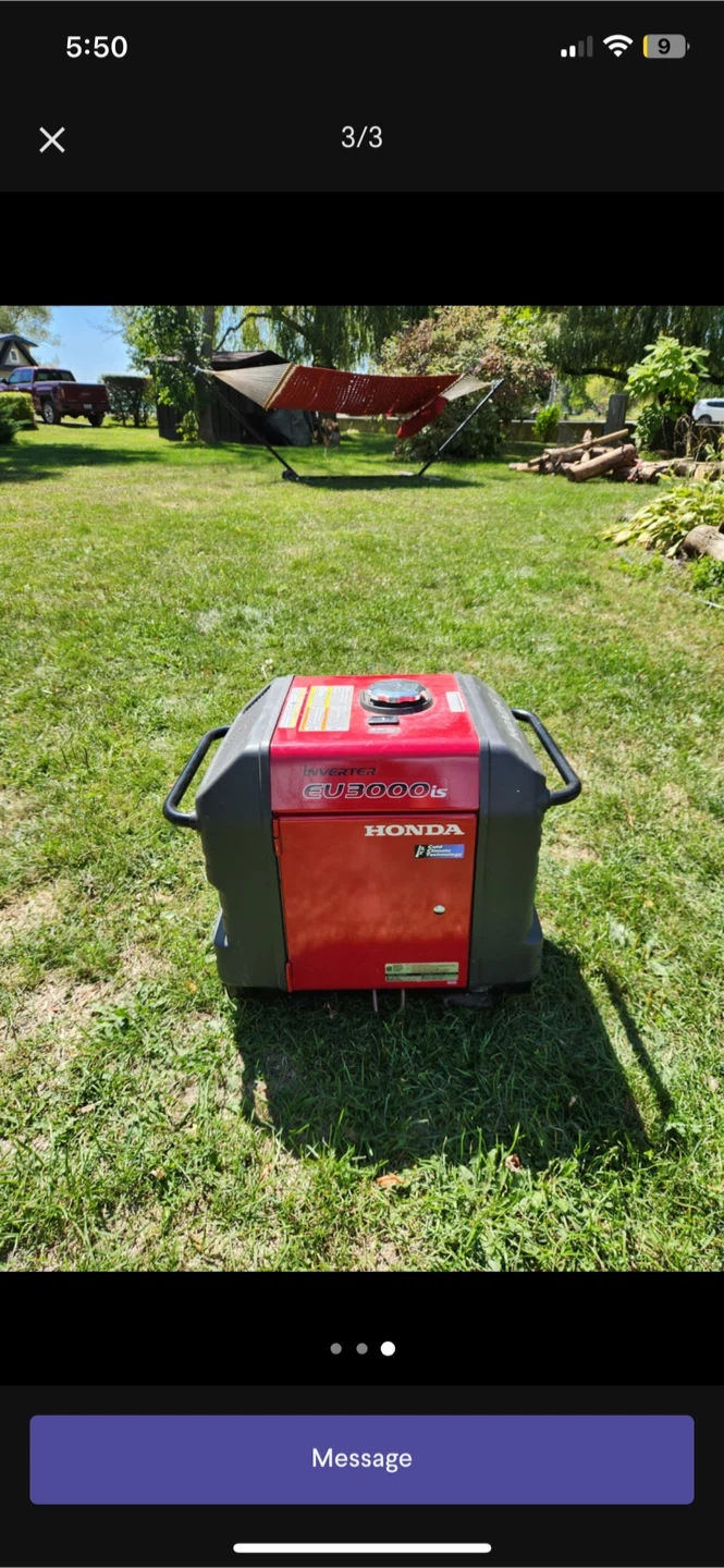 Honda eu3000 generator. Bought brand new in 2020 used every summer a handful of times while we camped, serviced by Honda every year. Starts first pill and it's super quiet.