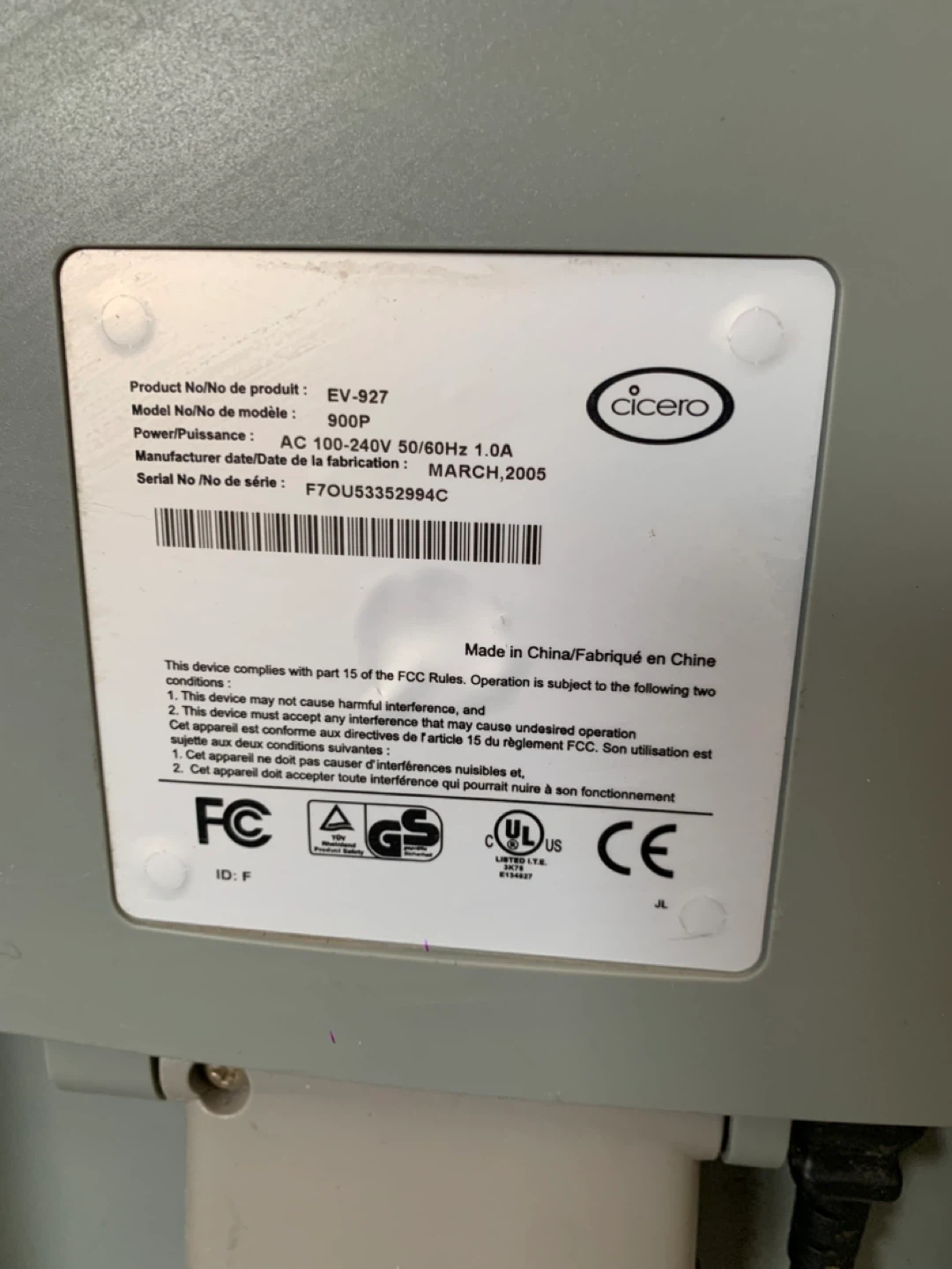 Selling a Cicero monitor, model EV-927. It's the 900P model. Manufacturing date is March, 2005.