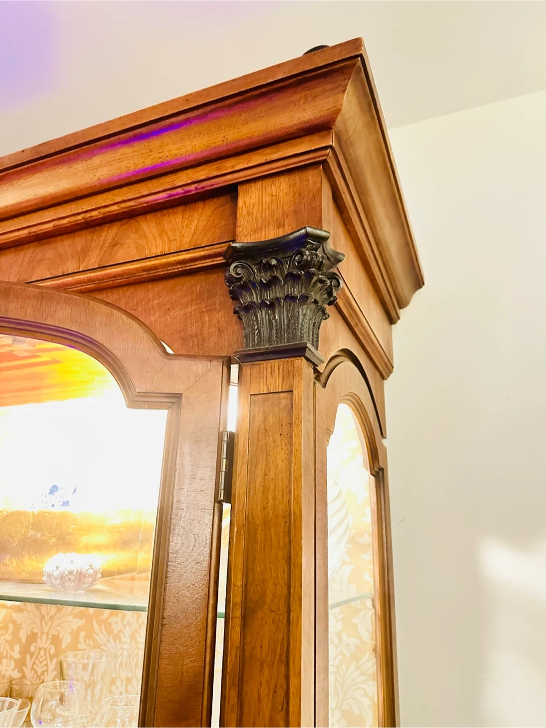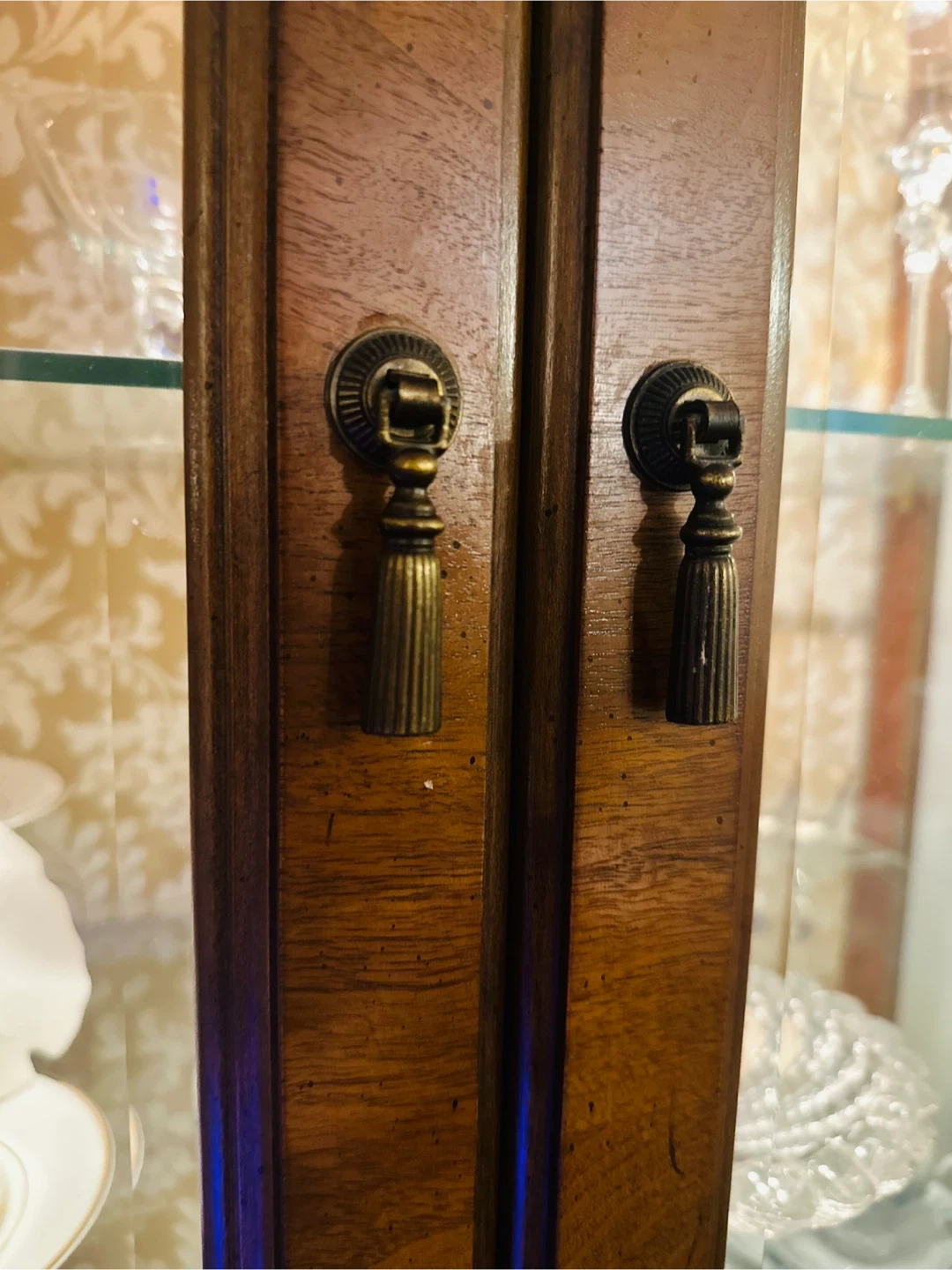 Selling a beautiful display cabinet! It features glass shelves and wooden doors. Perfect for showcasing your favorite items