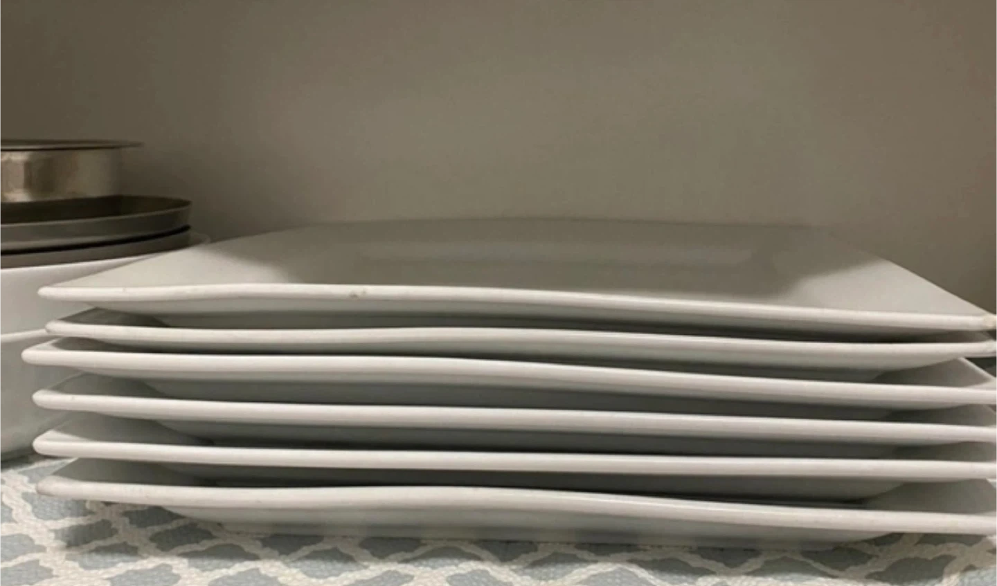 1000+Selling a white square serving plate. It measures approximately 10 inches by 10 inches. Great for serving appetizers or desserts or anything you want