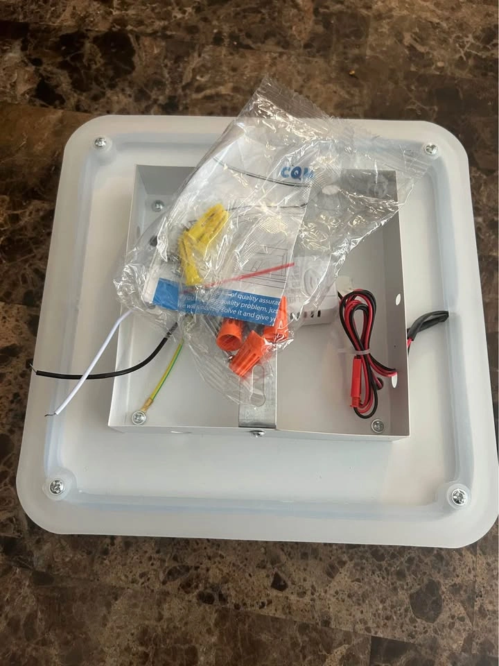 Size: L9.5*W9.5*H3 inch (L24*W24*H7cm); Power: 24W; Voltage:110V. Fit: 3-8 Square meter. The product uses a high quality LED light source, high brightness, not dazzling.