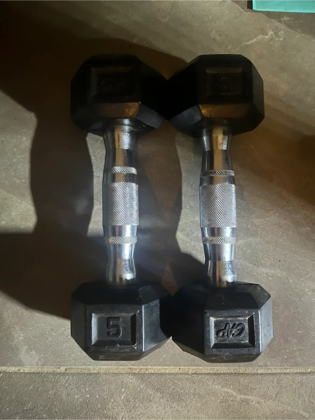 Selling a pair of CAP Barbell 5 lb chrome hex dumbbells. Perfect for home workouts.