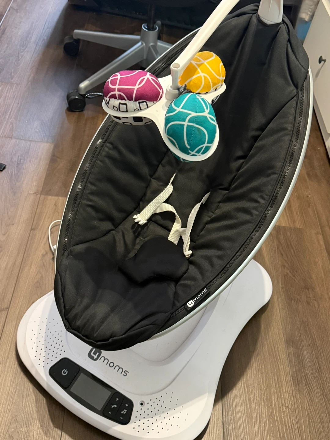 Selling a 4moms MamaRoo baby swing. It's in great condition and ready for a new home! This swing is designed to mimic the natural motions parents use to comfort their babies. It has multiple speeds and built-in sounds to soothe your little one. A great way to keep your baby happy and entertained!