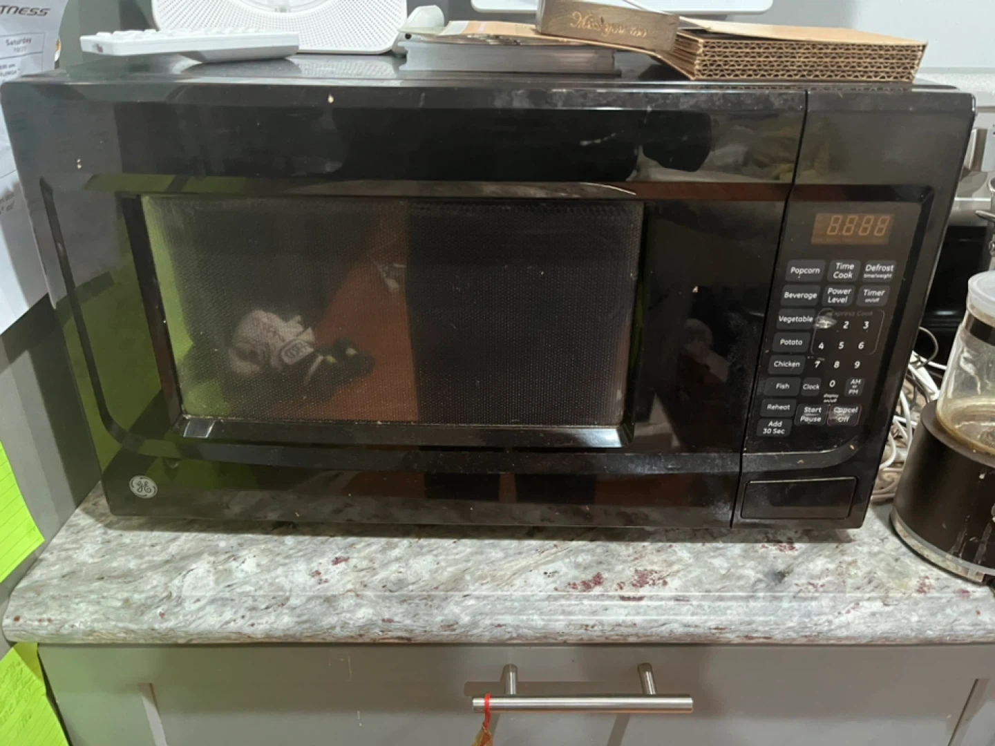 Selling a GE microwave oven. It has settings for popcorn, beverage, vegetables, potato, chicken and fish. It also has a defrost and reheat setting.