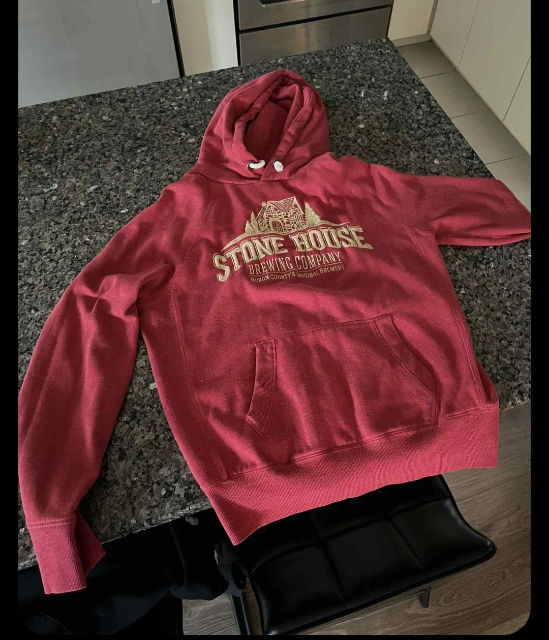 More than what's shown Selling a mixed lot of clothing! Includes a Stone House Brewing Company hoodie, a blue zip-up hoodie, a white off-the-shoulder top, shoes and more and a black dress. Great for refreshing your wardrobe with a variety of styles pick up only please