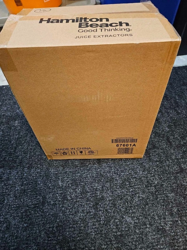 Brand new, never used, still sealed in original box. Model: Hamilton Beach Juicer Machine (67601AG). Features a large 3-inch feed chute for whole fruits and vegetables and a powerful 800W motor for fast juicing. It's a centrifugal extractor made with BPA-free materials and easy to clean, dishwasher-safe parts. Won at a work event, never opened, perfect for anyone looking to start juicing!