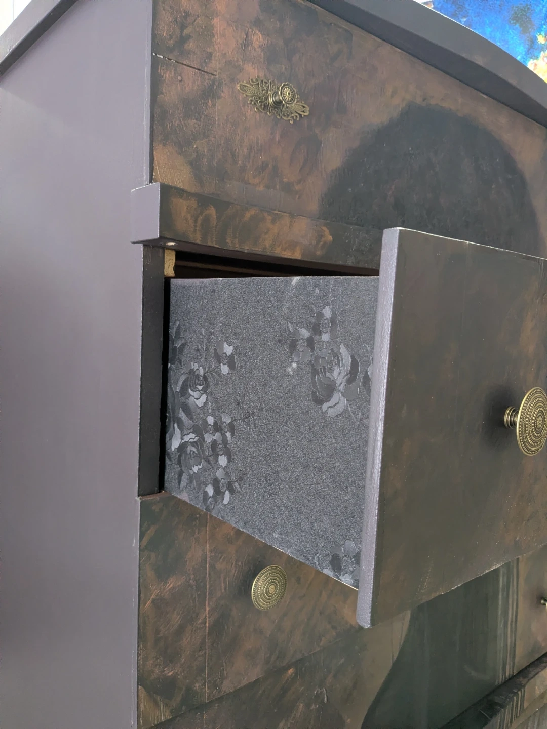 Bring art, soul, and style into your home with this completely transformed, hand-painted dresser. This piece stands out as both functional furniture and a true work of art.