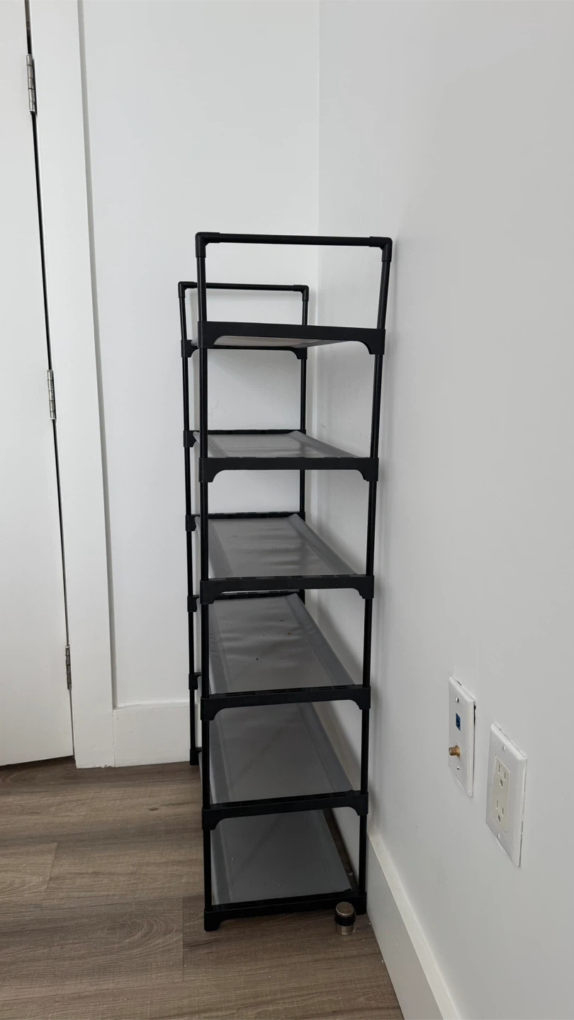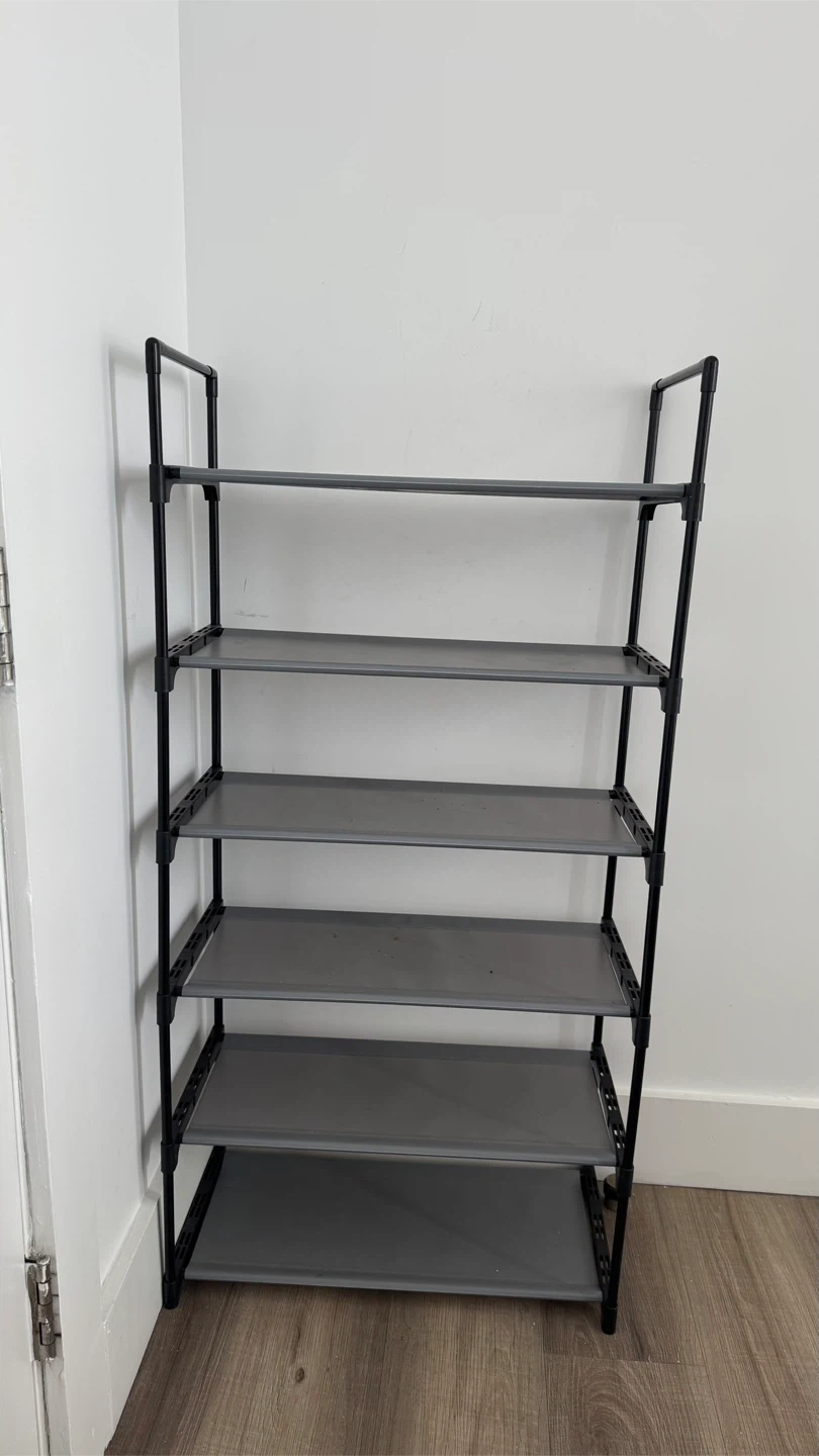 Selling a 6-tier shoe rack! It's perfect for organizing your shoes and keeping them off the floor. The rack is in great condition and has a simple, functional design. It's easy to assemble and fits well in closets, entryways, or bedrooms