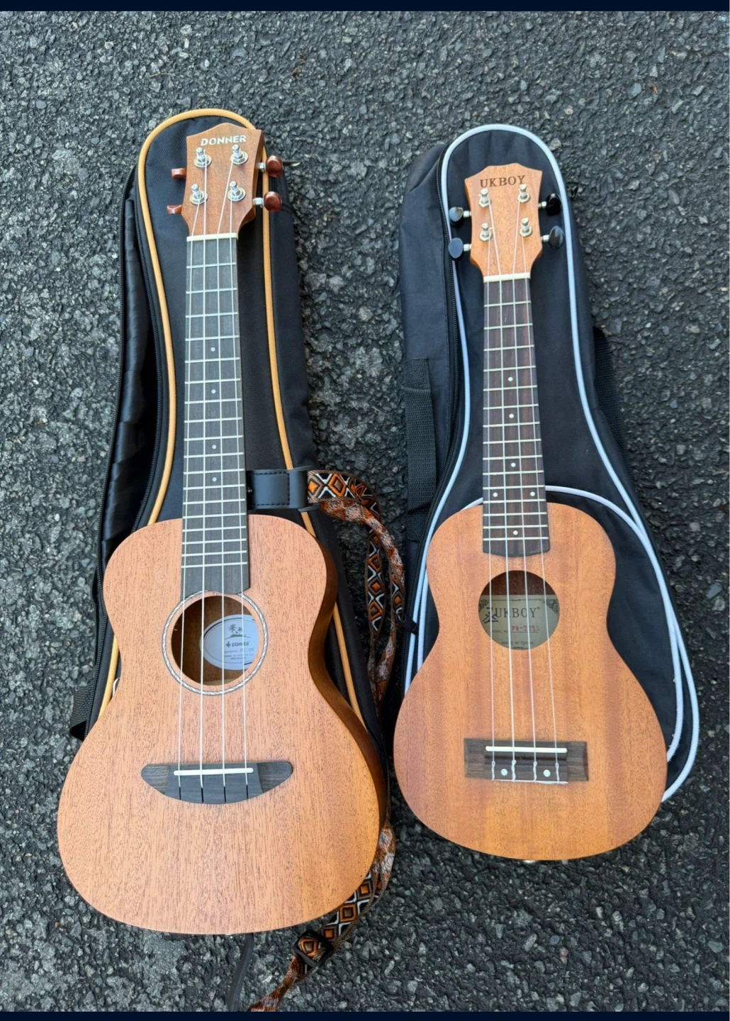 Selling a set of two ukuleles! One is a Donner and the other is a UKBOY. Both come with their cases, perfect for beginners or anyone looking to expand their collection