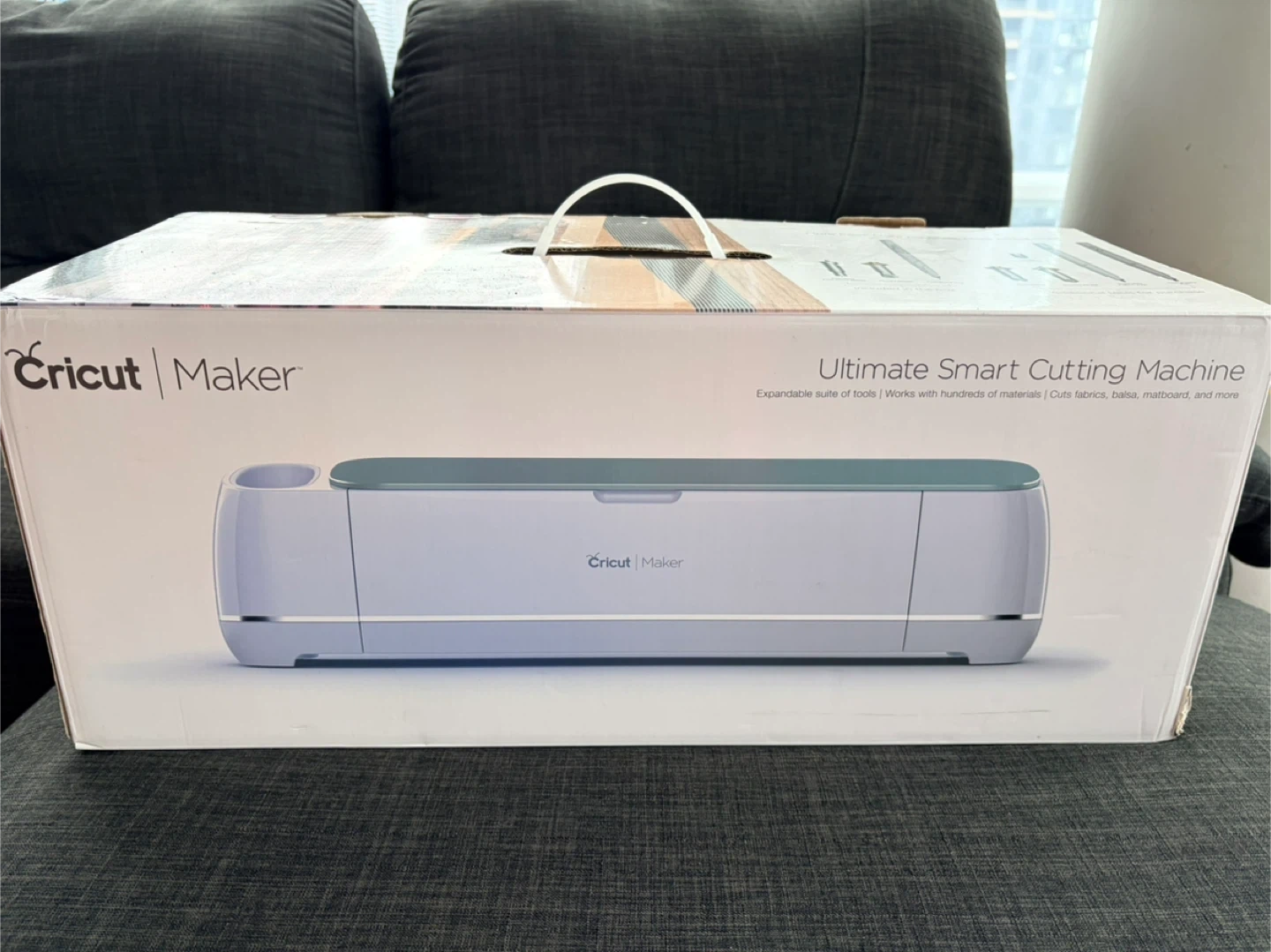 Selling a Cricut Maker, the ultimate smart cutting machine! It's in great condition and comes with the original box. This versatile tool handles fabrics, leather, and balsa wood with precision, opening up endless creative possibilities. Also included is a variety of colourful vinyl & tools for your projects.