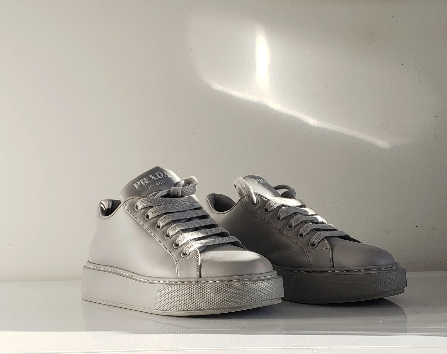 Buy & SellPrada Dove Grey Leather Sneakers - Size 7Prada Dove Grey Leather Sneakers - Size 7$410EUC. Size 36.5, fits 7. Pick up, cash. ConditionLike newSize7WHERE TO MEET1347 St Clair Ave WView MapSELLERAnnCorso Italia64465 reviews0 chats·0 favorites·10 views