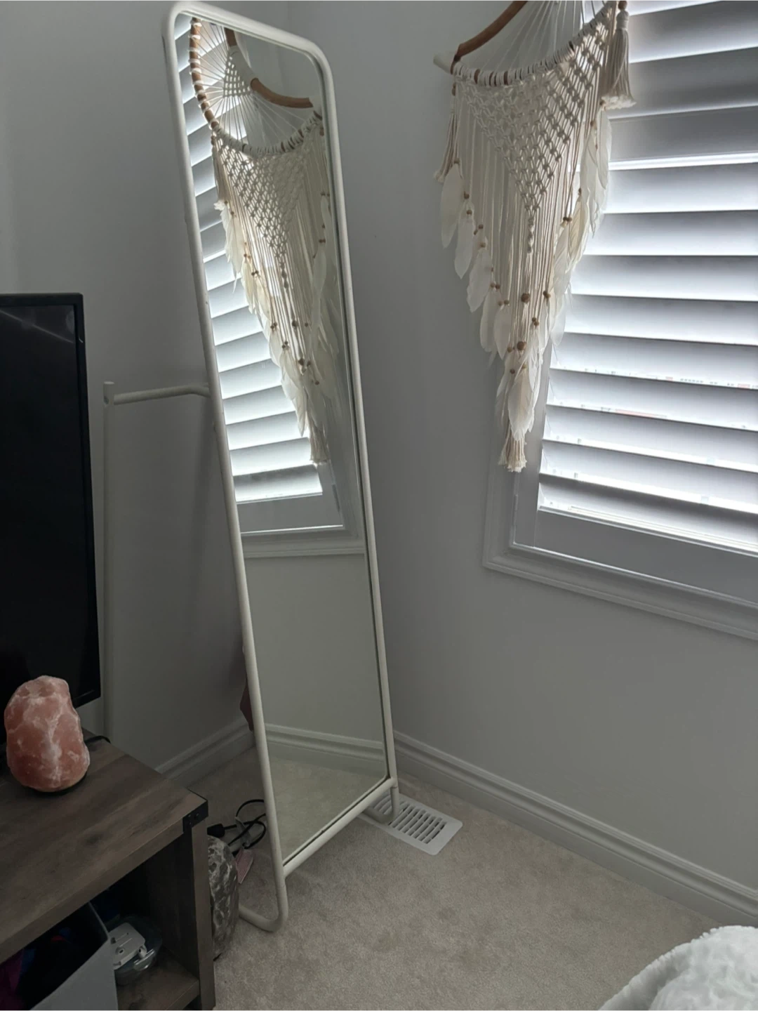 Selling an IKEA Hovet full-length mirror in white. It's in great condition and ready to brighten up your space! Perfect for bedrooms, closets, or entryways. It's a simple, stylish way to check your outfit before heading out the door