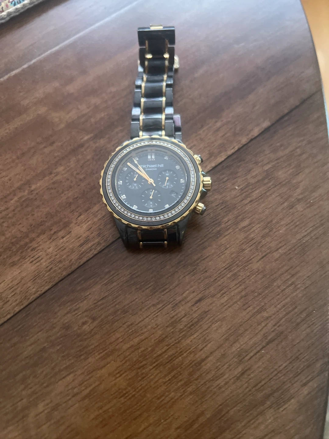 Selling a Michael Hill ladies chronograph watch! It features a black and gold design. It's in great condition and ready for a new home