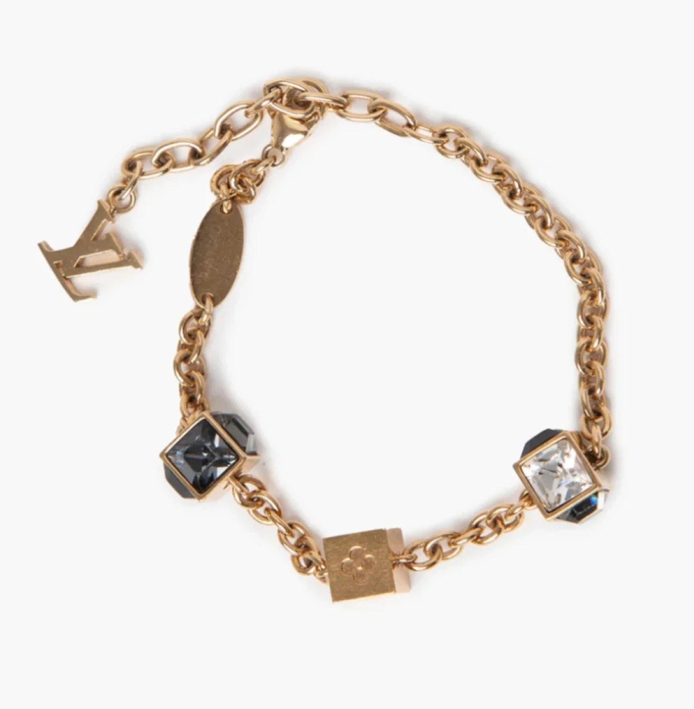 The bracelet features gold-tone hardware and cube charms with crystal accents. It's in great condition and ready to add a touch of luxury to your style!