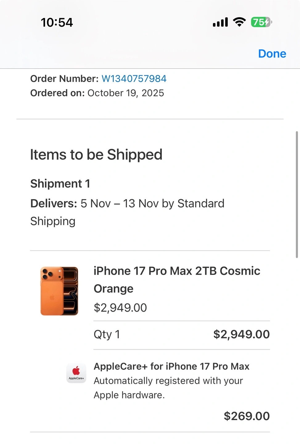 Selling a brand new iPhone 17 Pro Max with a whopping 2TB of storage in the stunning Cosmic Orange colour! And Apple care added.