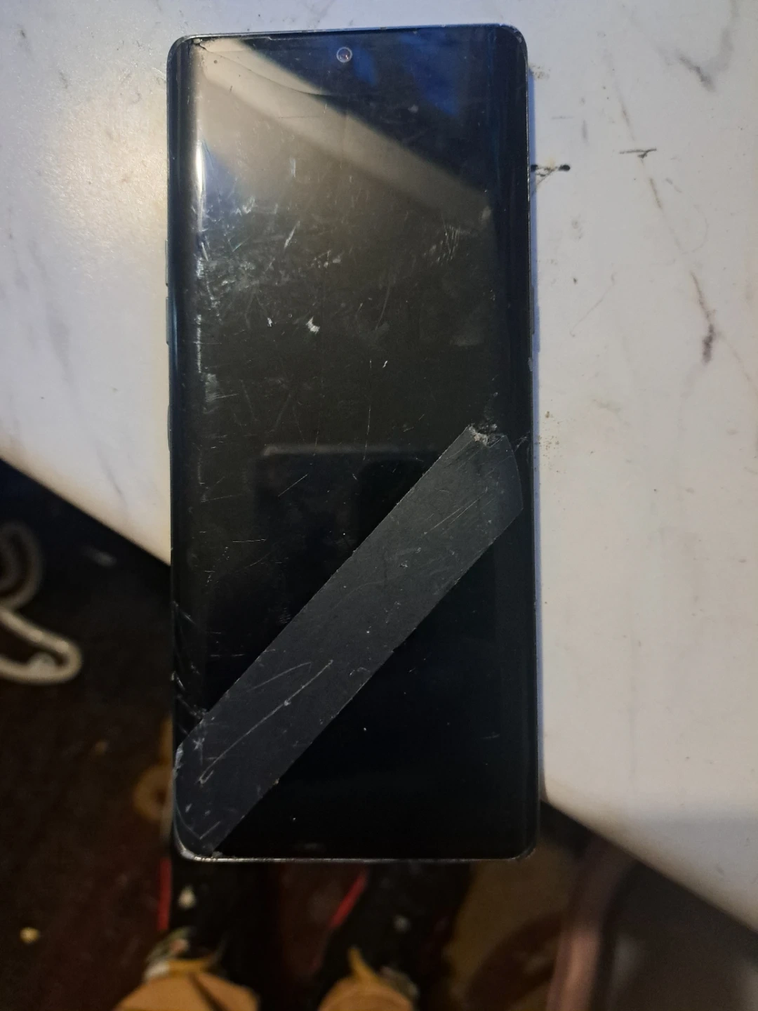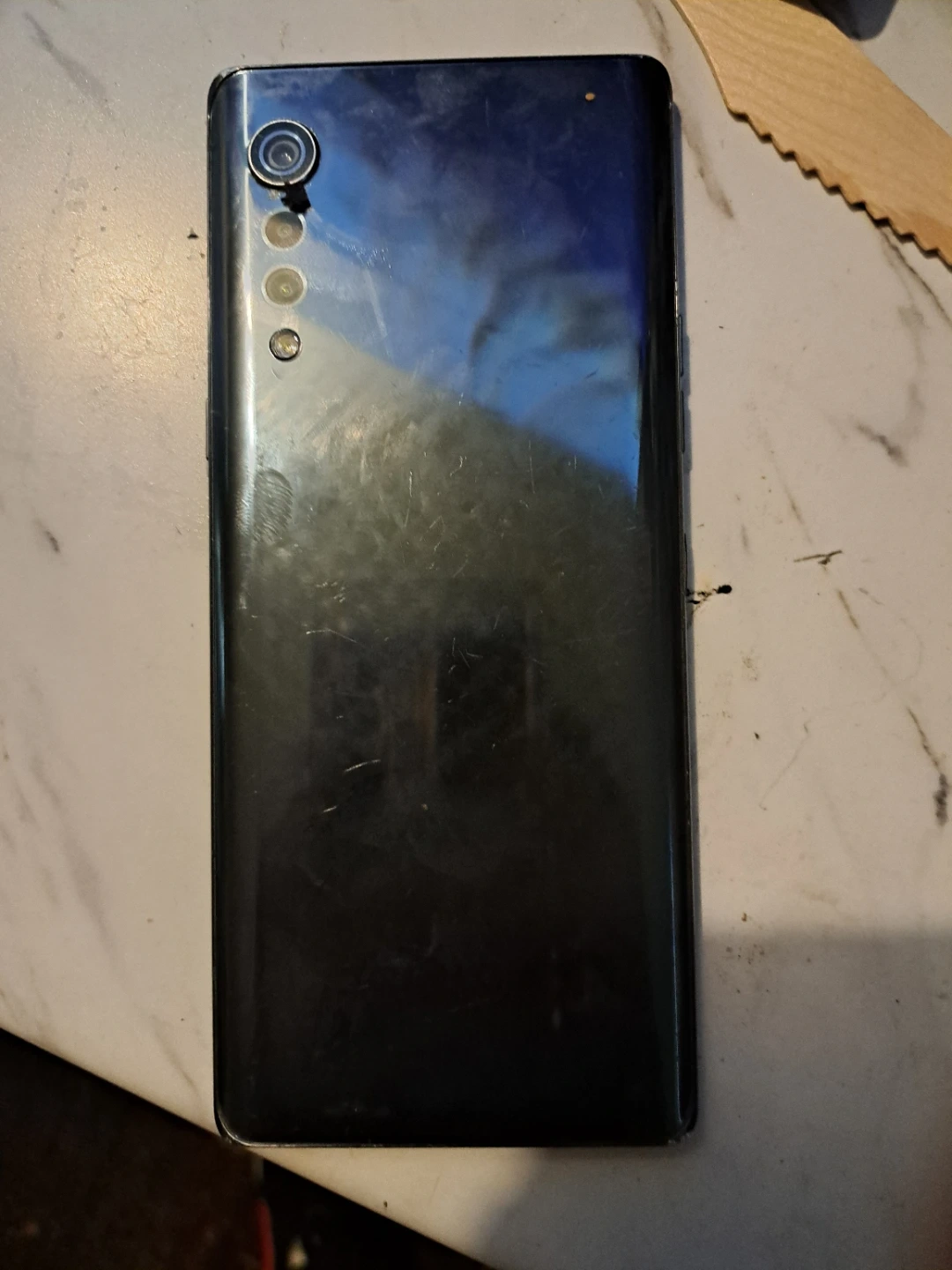 Selling an LG phone. Please note it's in used condition with visible wear and tear. There are scratches on the screen and body, and some damage to the edges. See photos for details