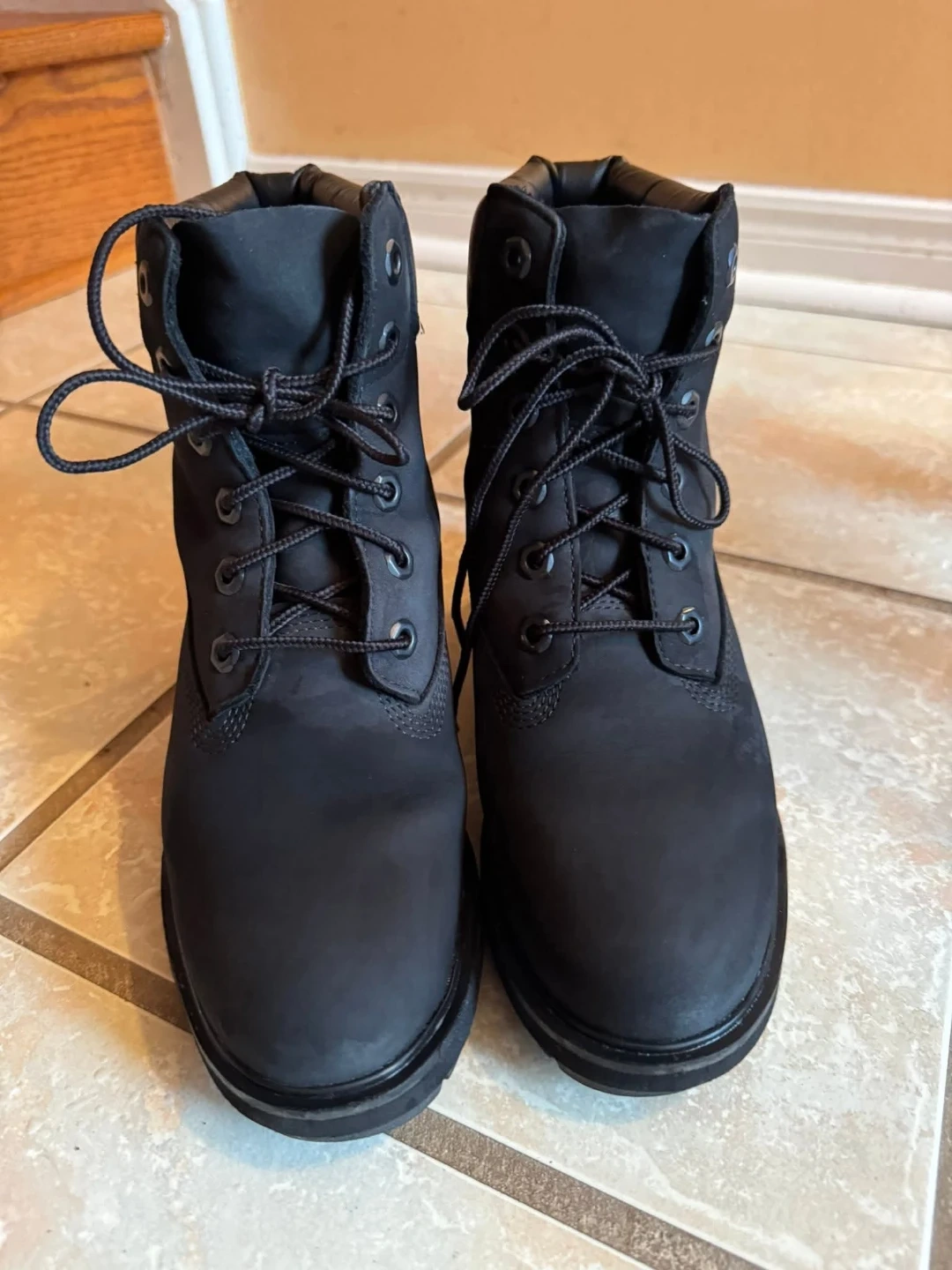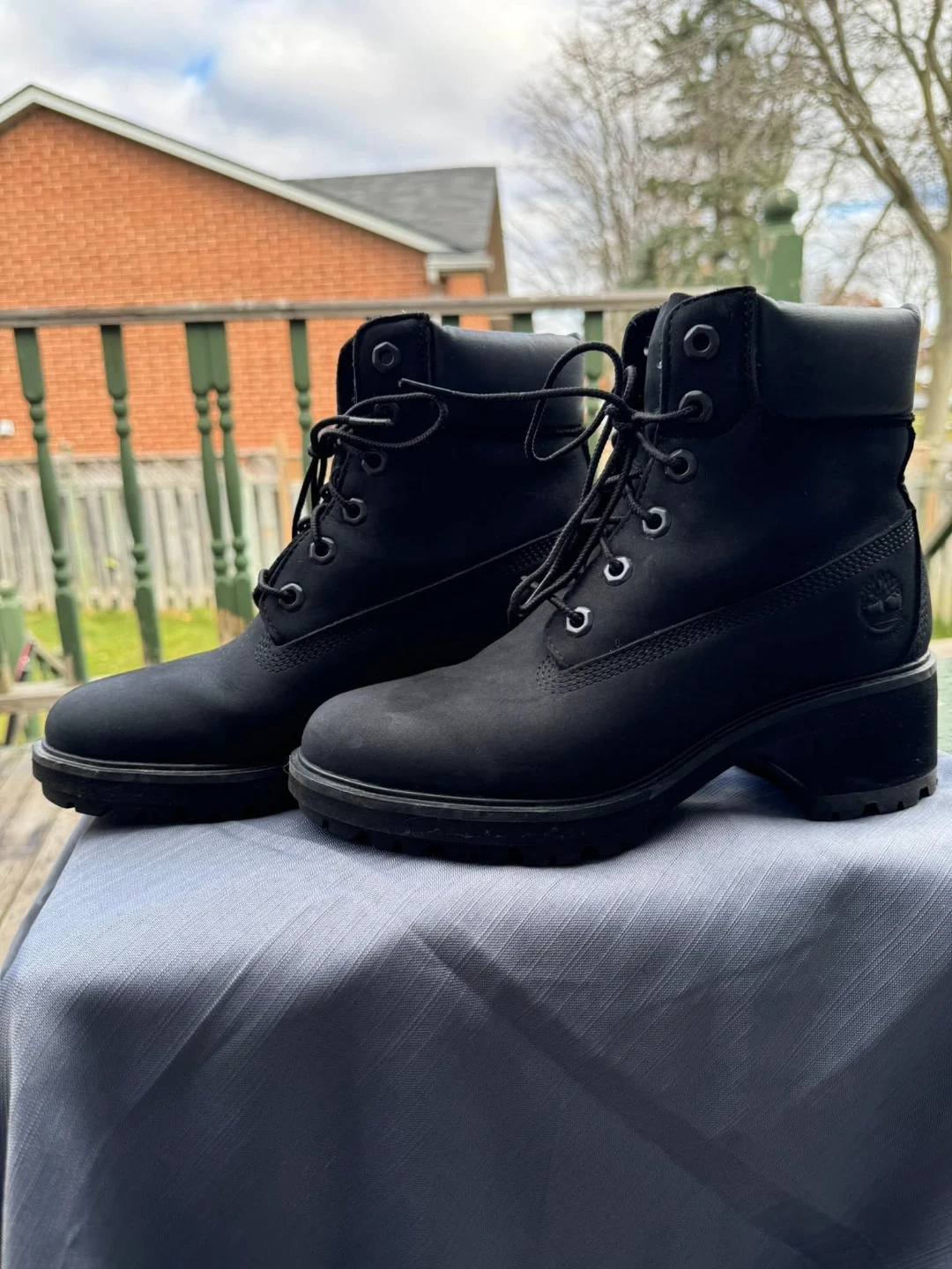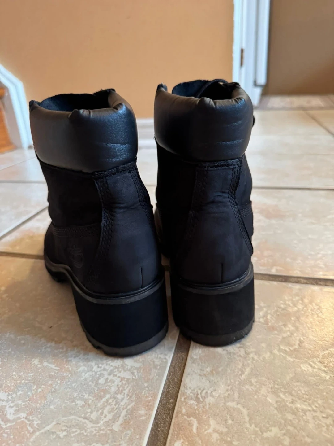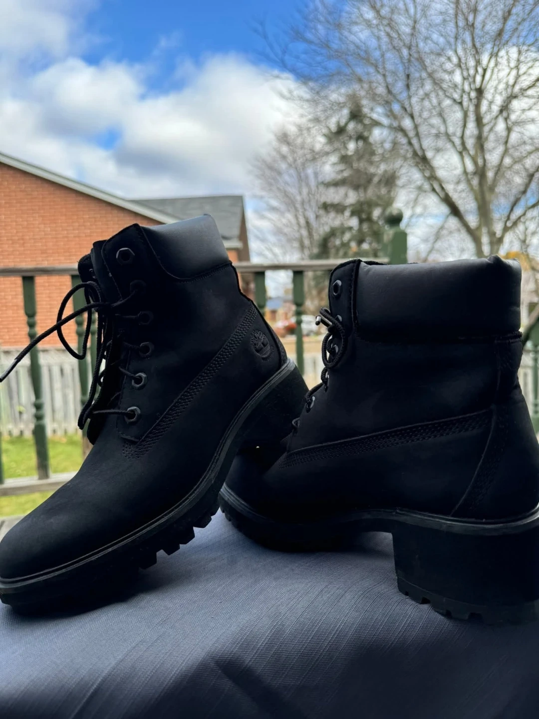 Selling a pair of Timberland Women's Kinsley 6-Inch Waterproof Boots in black! These are stylish and durable, perfect for any weather. Originally bought for $160. They're in great shape and ready for a new home!