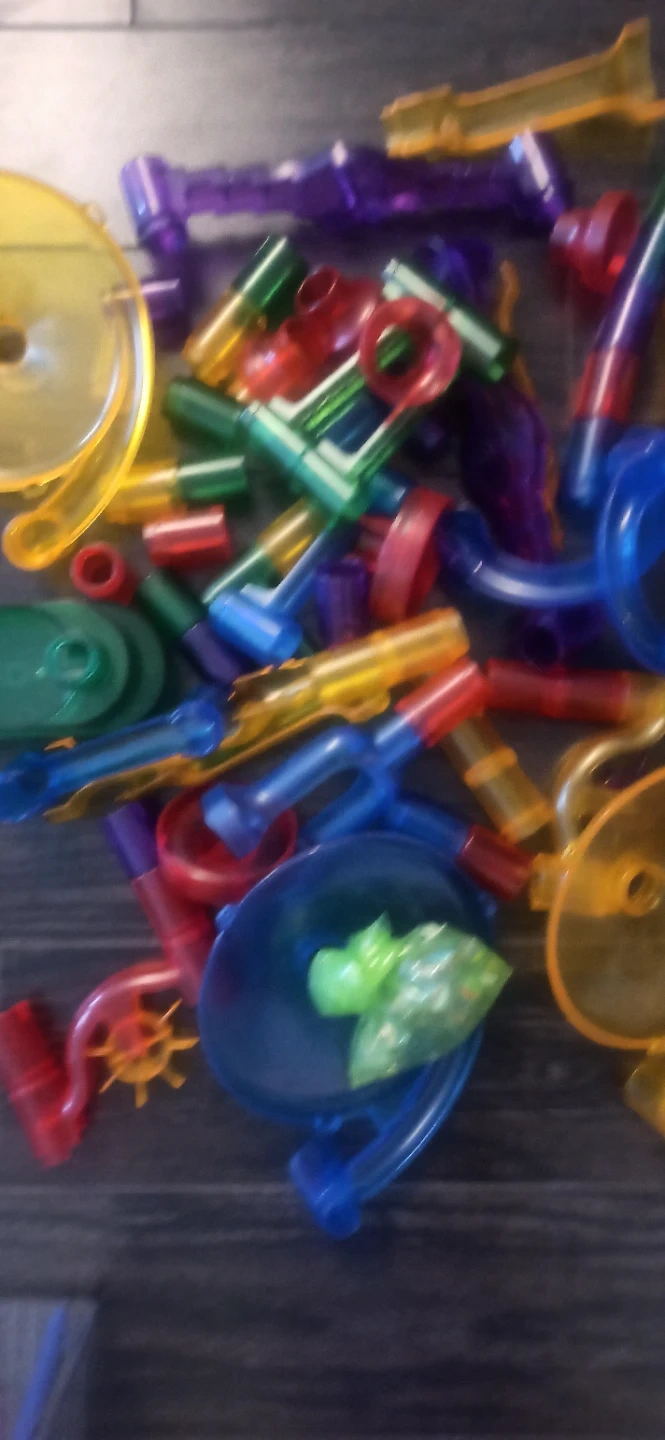 Selling a marble run toy set! It comes with a bag of marbles and various colourful tubes and pieces to build your own marble run. Great for kids! Around 65pieces