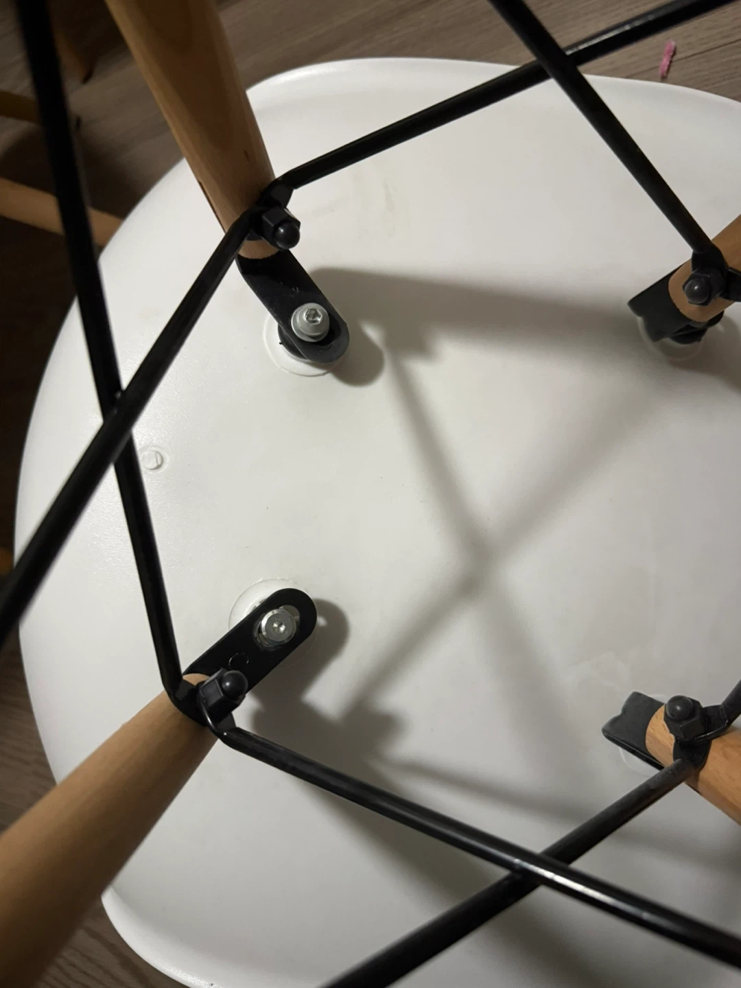 Selling a round white dining table with four matching chairs. The set is in great condition and would look lovely in any dining space or kitchen. The chairs have a modern design with wooden legs, adding a touch of warmth to the set no scratches or stain .just like new selling due to moving purchased less than 2 yrs but not used much
