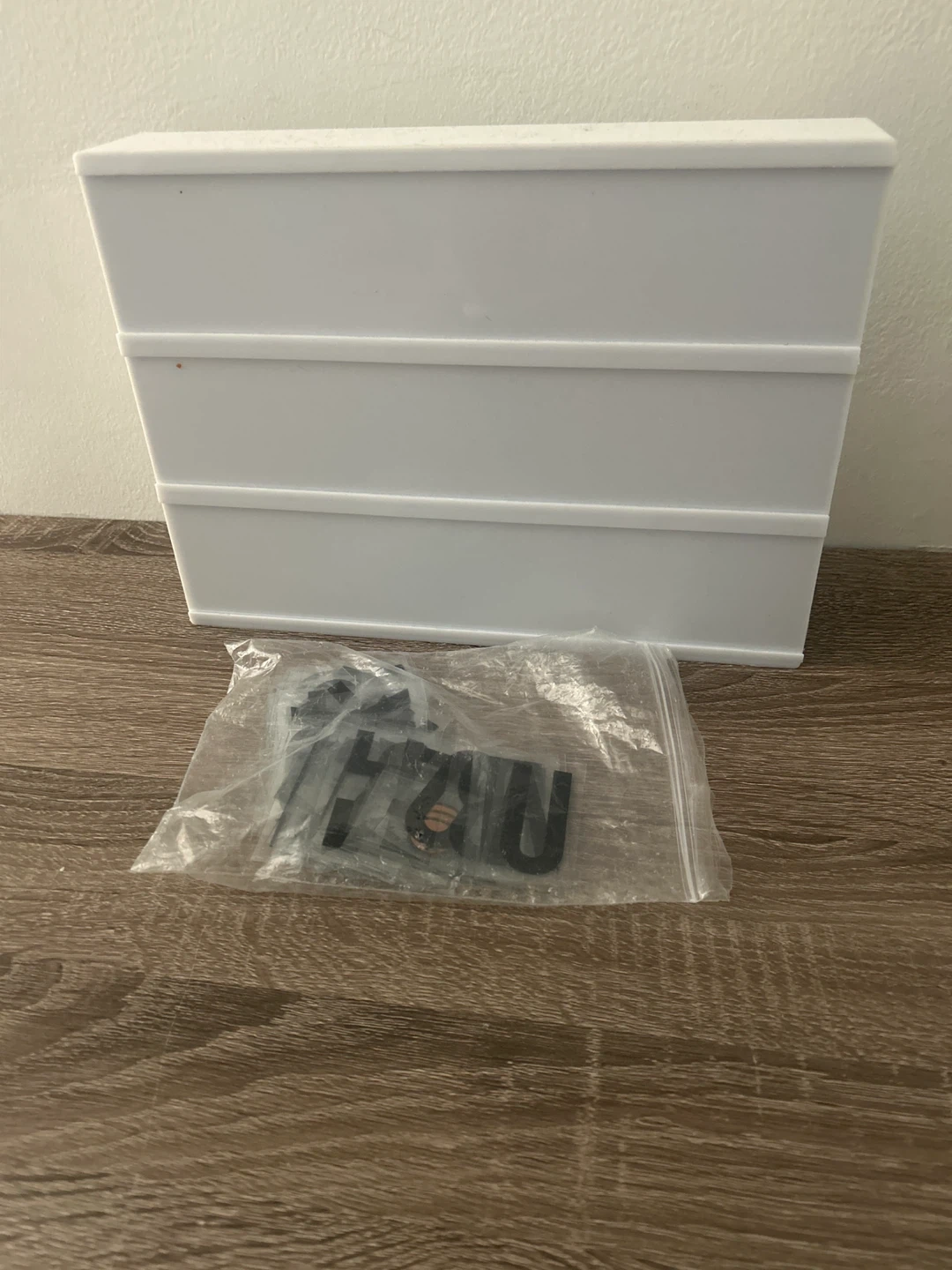 I'm selling a white LED light box that comes with a set of letters! It's perfect for adding a personal touch to any room. The box is in great condition and ready to light up your space.