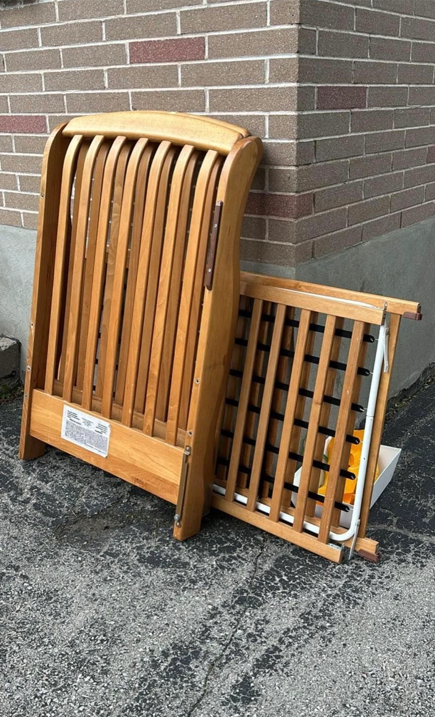 Here's a convertible wooden baby crib! It's in good condition and ready for a new home. Perfect for your little one's nursery