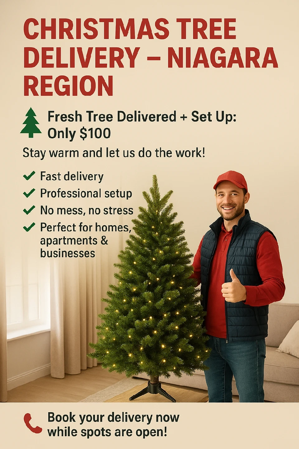 We deliver your Christmas tree straight to your home anywhere in the Niagara Region β and weβll set it up for you if needed.