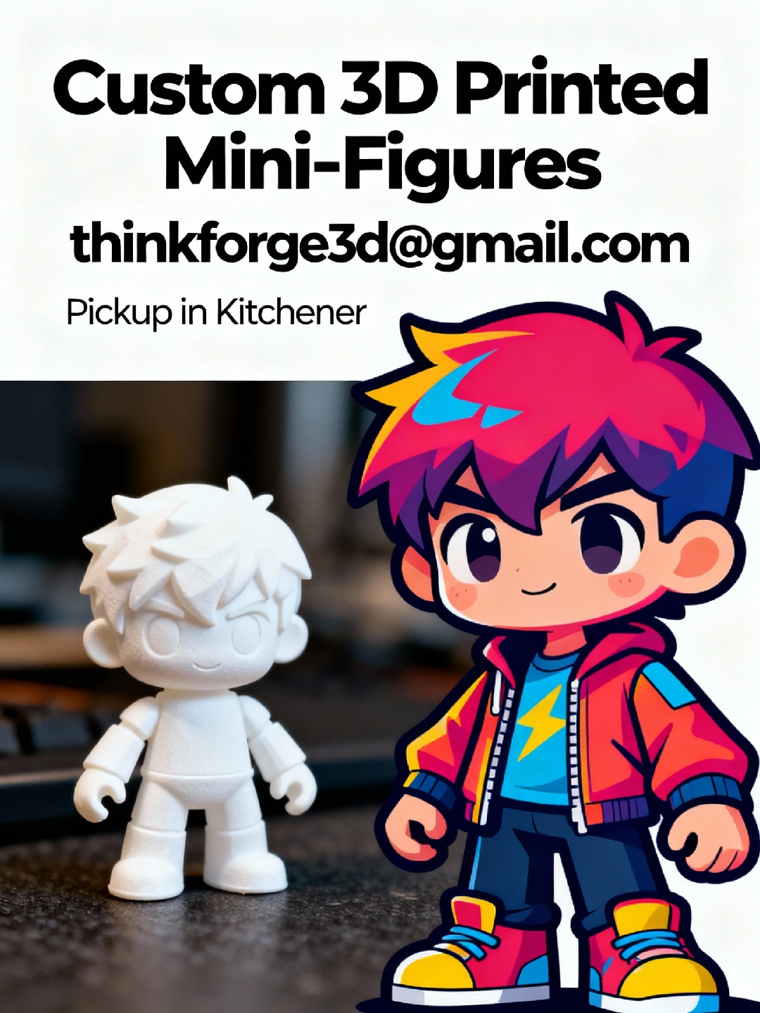 Buy & SellCustom 3D Printed Mini-FiguresCustom 3D Printed Mini-Figures$10I can custom 3D printed mini-figures of you and your friends and family! They are perfect for gifts.WHERE TO MEETCheck LocationView MapSELLERVivek GadhiyaForest Hill100 reviews0 chats·0 favorites·2 views