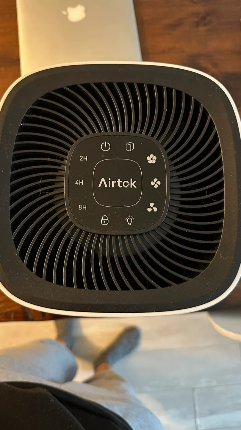 Selling an Airtok air purifier in great condition! It's white and has a sleek design that fits well in any room. It comes with different settings for 2H, 4H, and 8H, as well as fan speed and light control. It also includes the charger