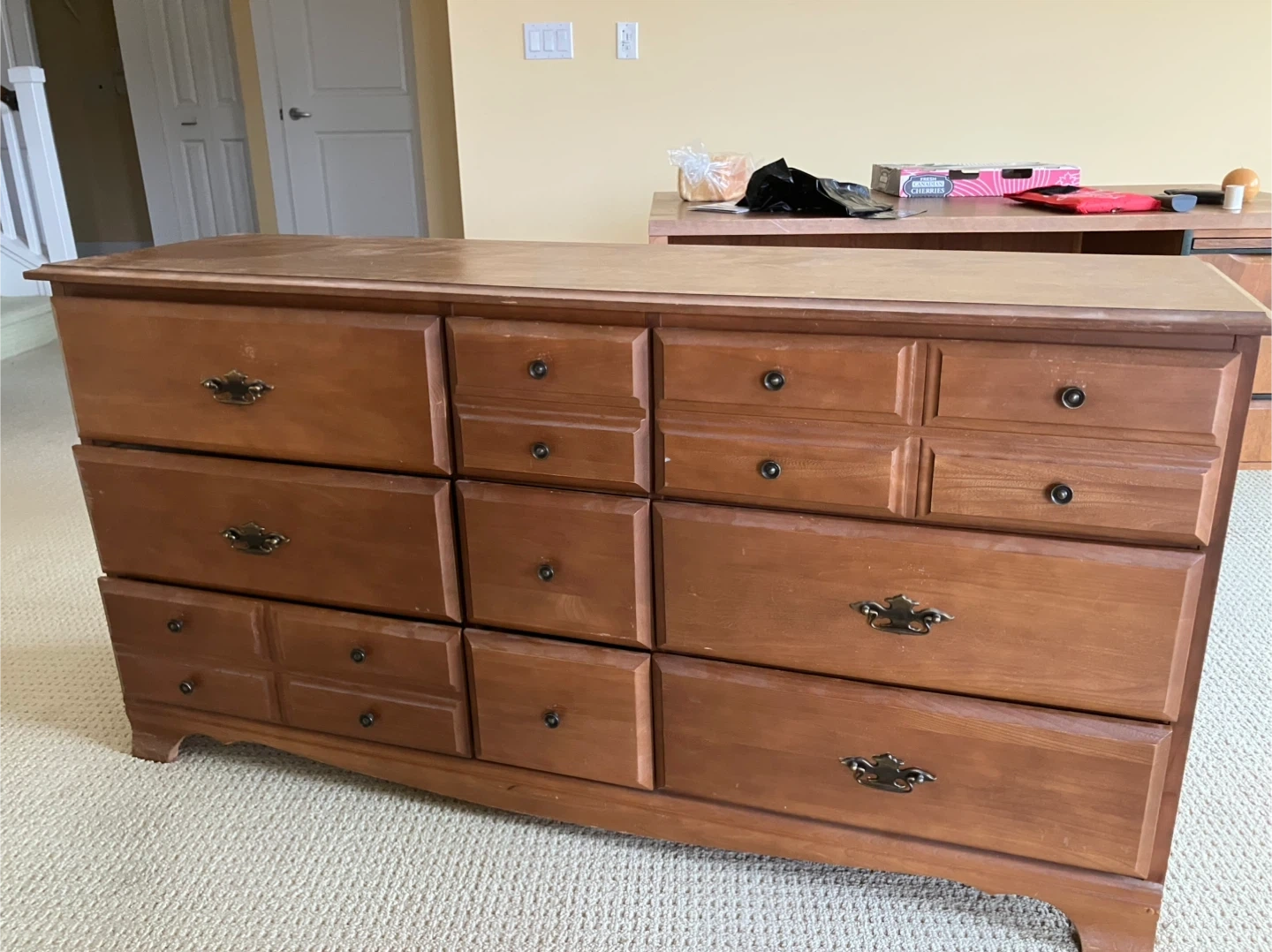 Buy & SellWooden Dresser with 9 DrawersWooden Dresser with 9 Drawers$65Here's a wooden dresser with nine drawers. It's perfect for adding extra storage to any bedroom. It has a classic look with a warm wood tone.0 chats·1 favorites·40 viewsSELLERChrisFleetwood100 reviewsWHERE TO MEETFleetwood