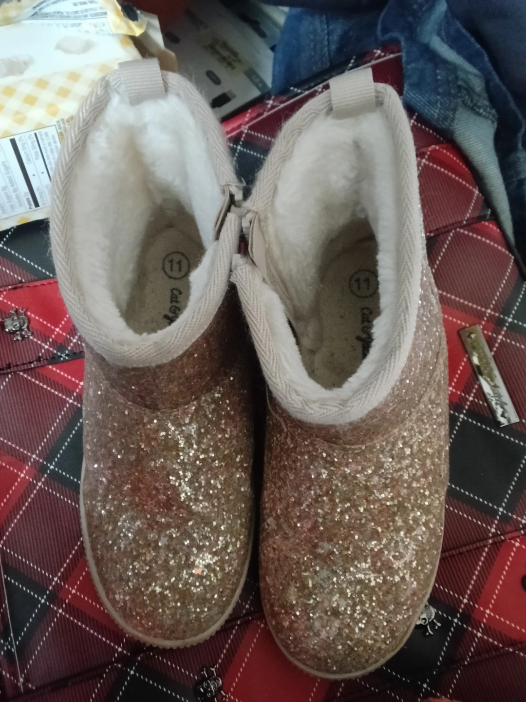Cute glittery boots from Cat & Jack in size 11! They have a soft, warm lining, perfect for keeping little feet cozy. The soles have some wear, but still lots of life left