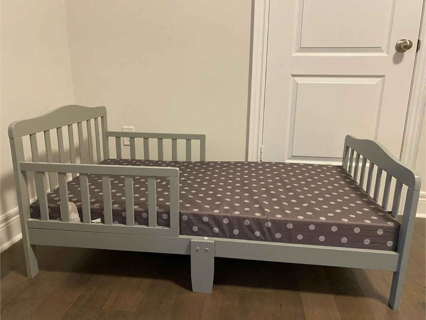 Here’s a toddler bed in great condition! It's a lovely grey colour and perfect for transitioning your little one from a crib to a bed