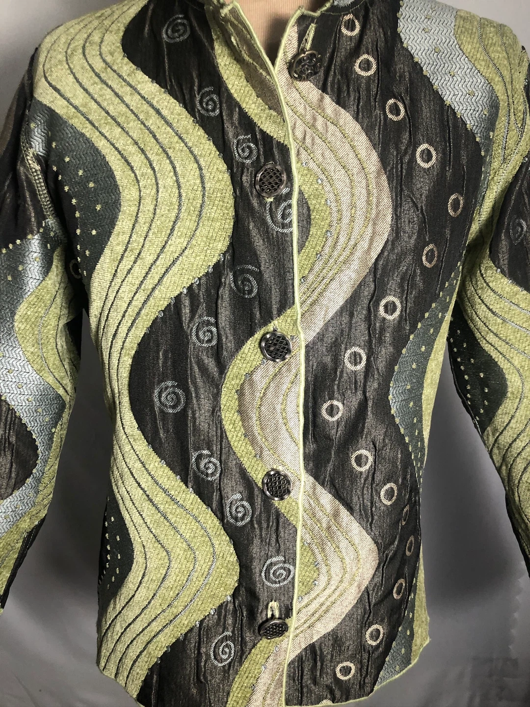 Women’s Green, Silver, Grey Reversible Jacket. Size Large.