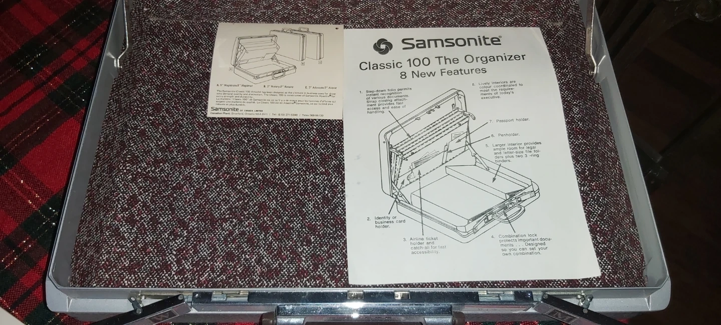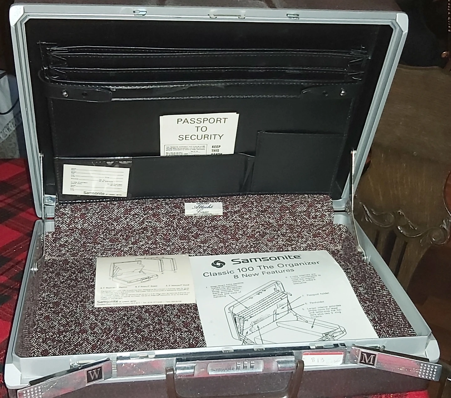 Selling a Samsonite hard shell briefcase in brown. It's perfect for carrying documents and other essentials. The briefcase has a combination lock for added security. Never used. Cash only.