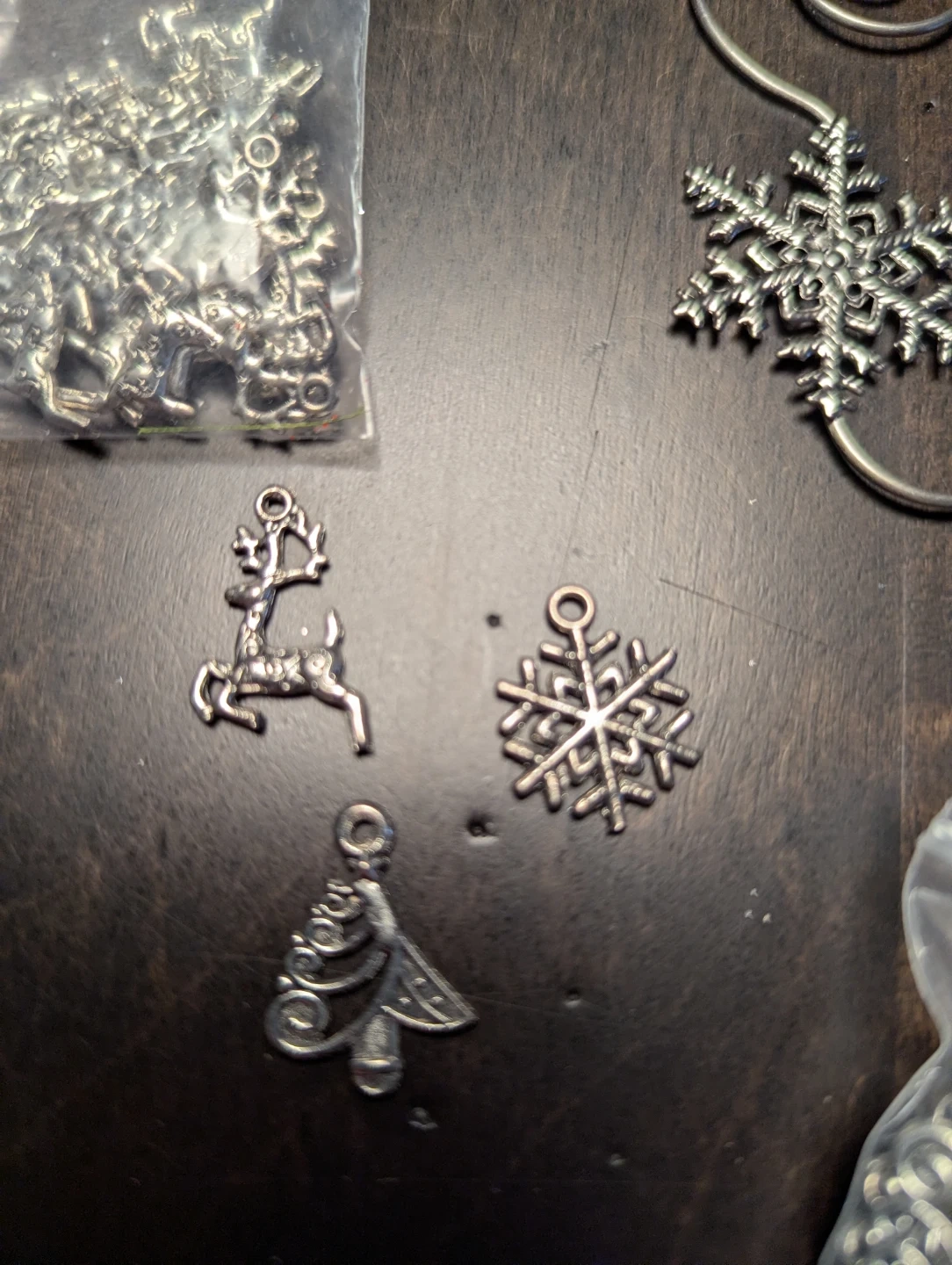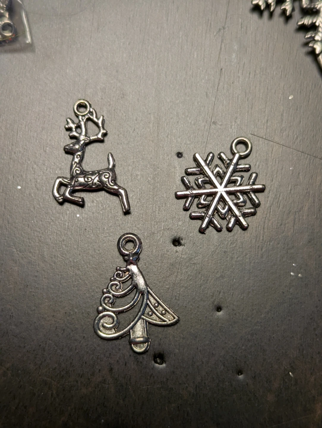 Selling a collection of Christmas-themed charms! Includes snowflakes, reindeer, and Christmas tree designs. Perfect for crafting and jewelry making for the holiday season