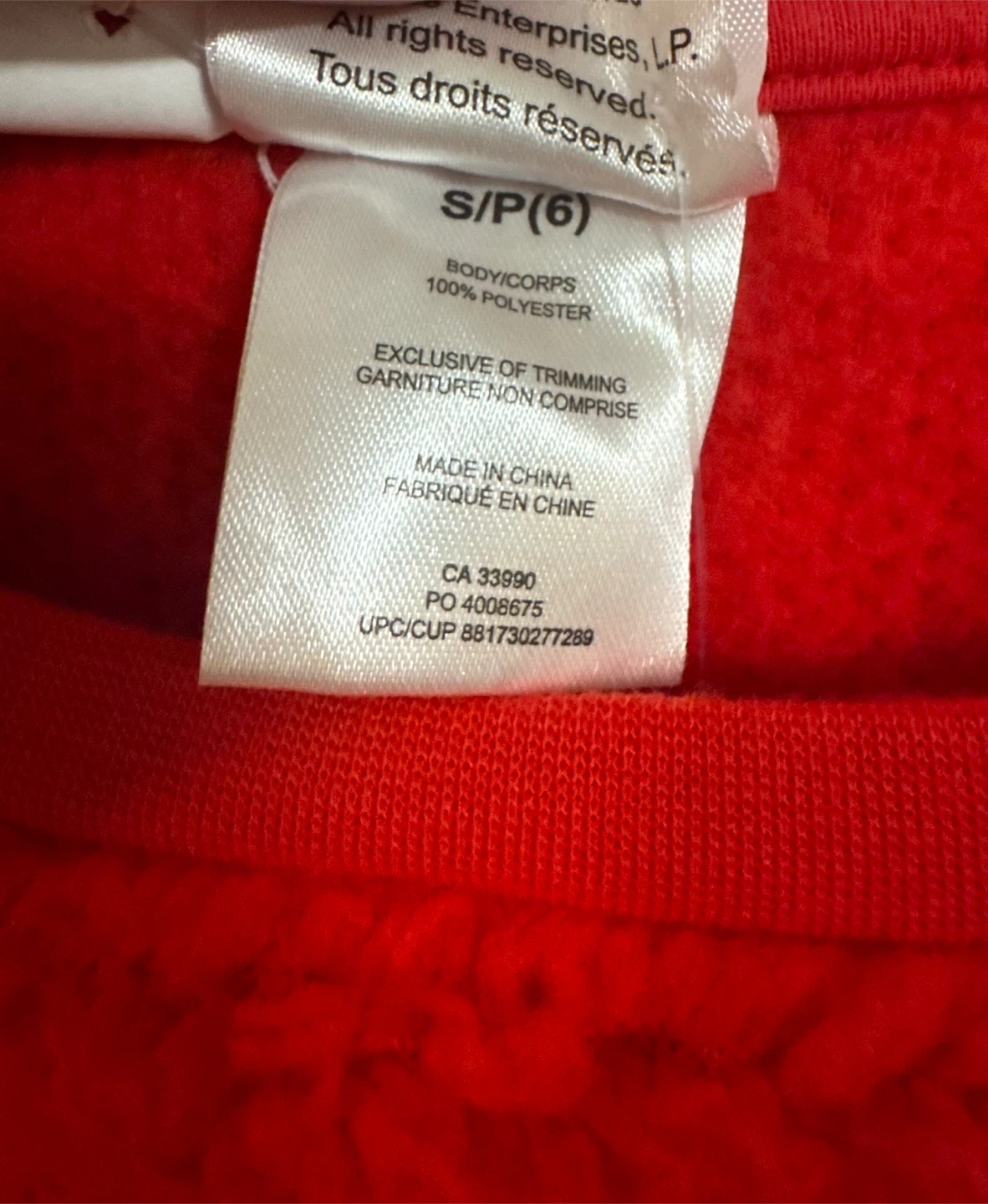 65Cozy up your little one with this adorable Grinch fleece sweater! It's a vibrant red and features the Grinch character. The size is S/P (6) and it's made of 100% polyester