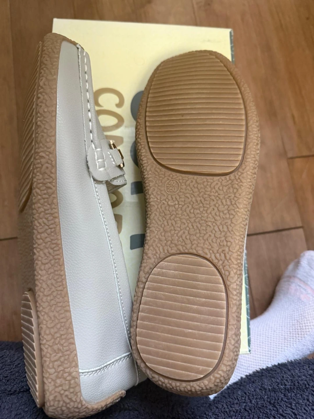 Step into effortless style with these Soft Comfort Elyse loafers in size 8W! These light grey loafers feature a sleek design and promise all-day ready to add a touch of elegance to your wardrobe. Never Worn comes with a box.