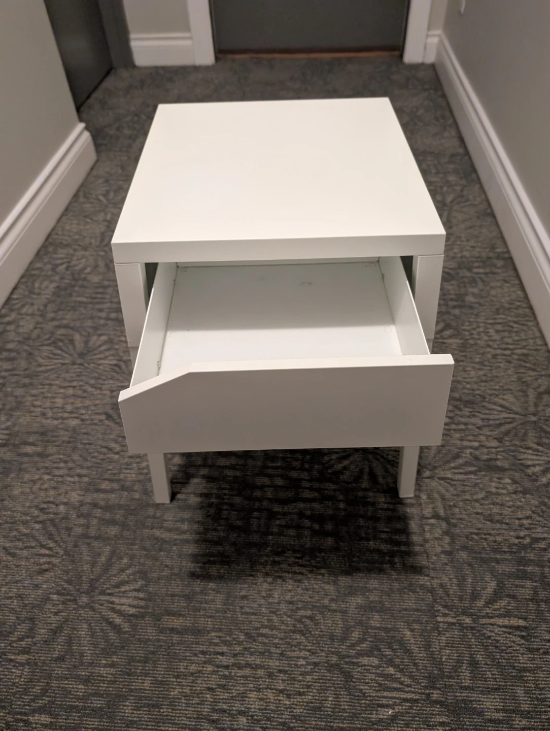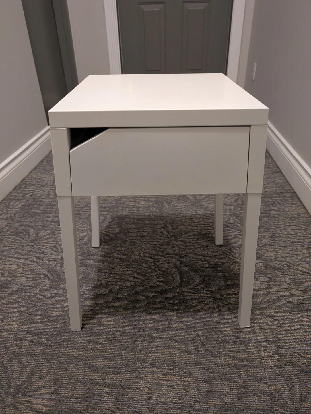 The table is about 23 inches tall and the top is about 15 inches by 15 inches