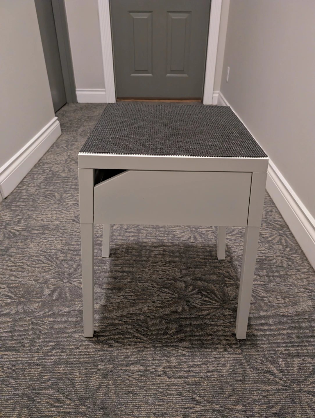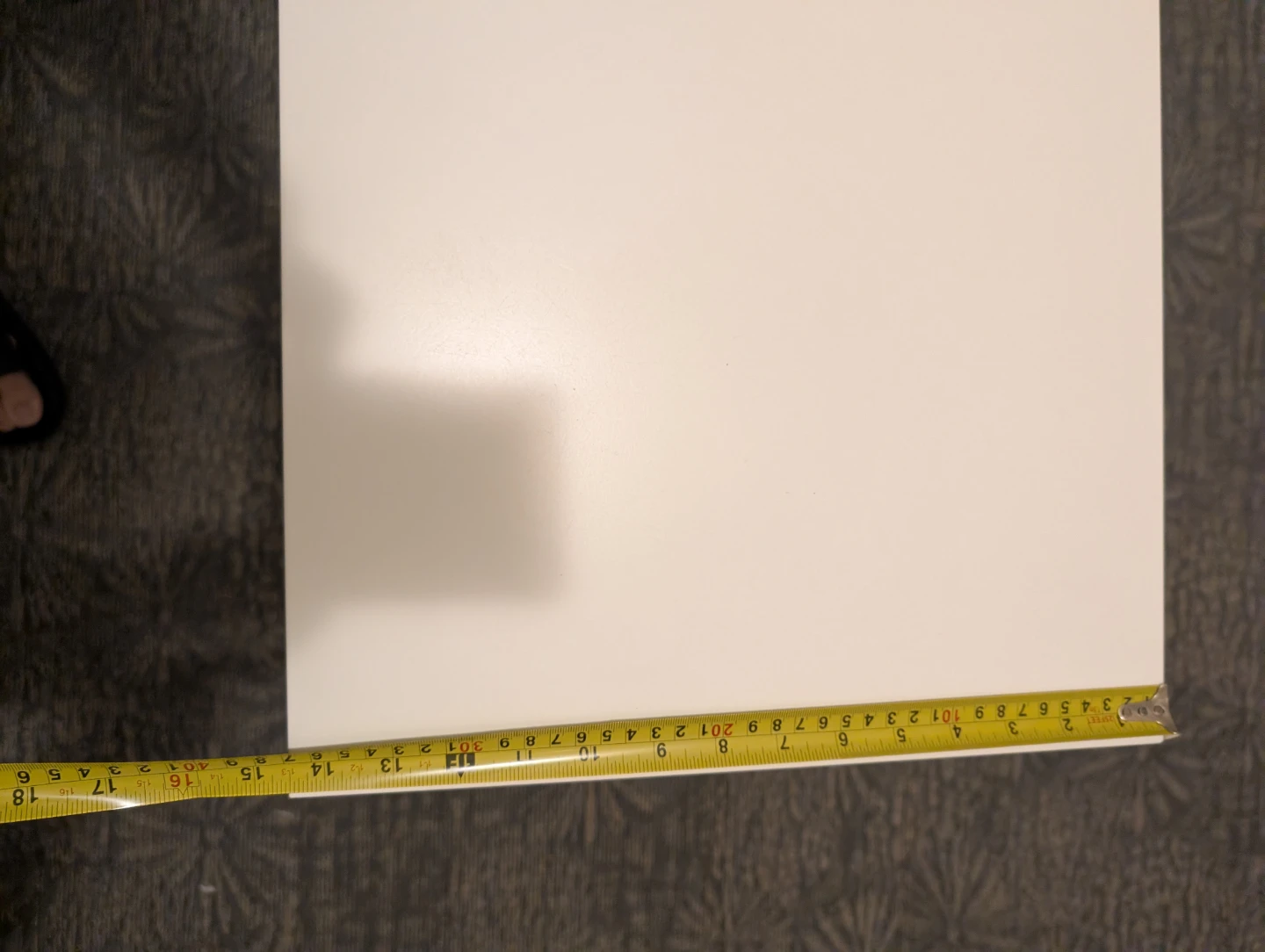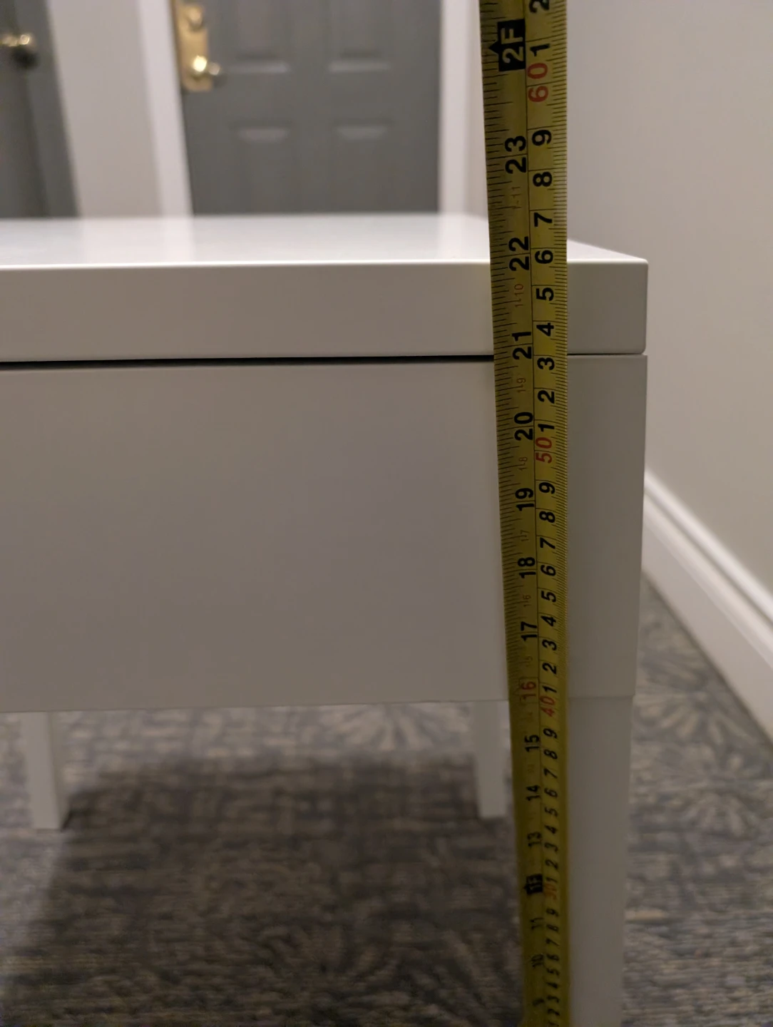 The table is about 23 inches tall and the top is about 15 inches by 15 inches