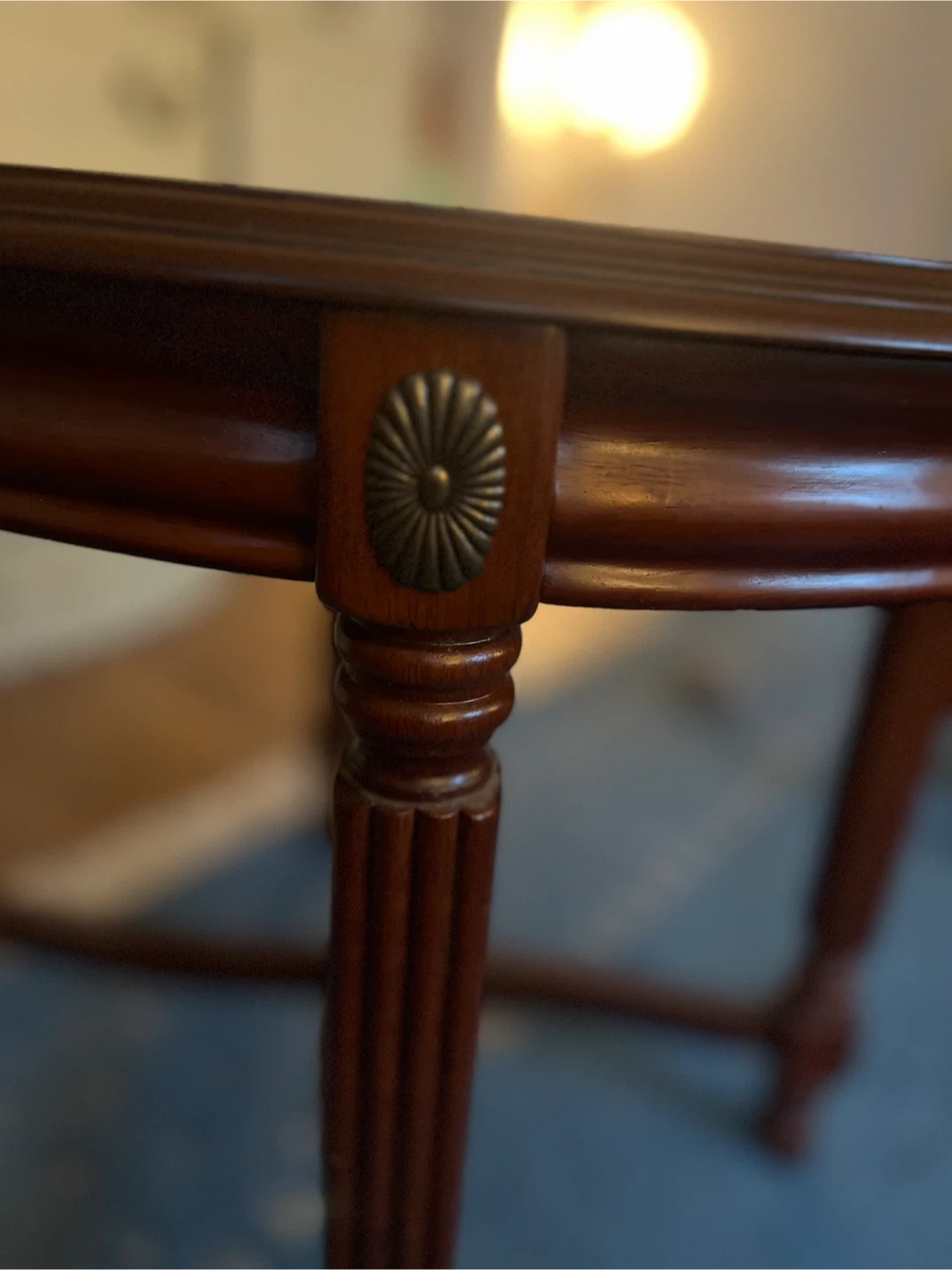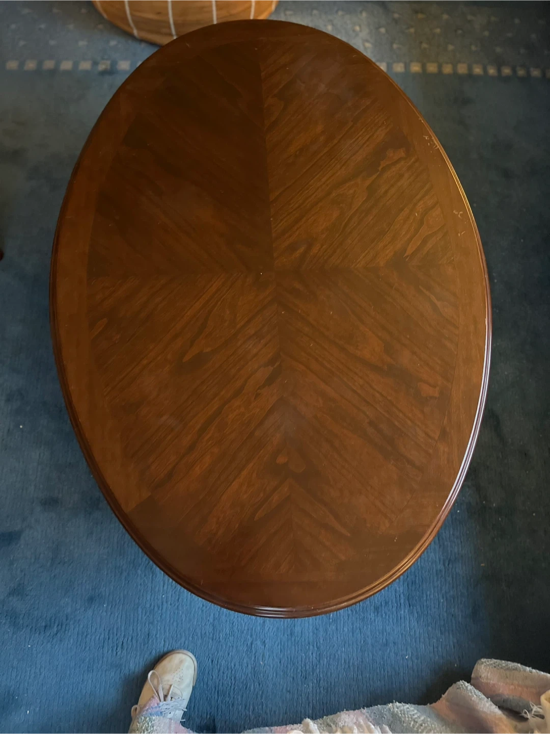 Selling a beautiful Solid Wood Coffee Table & Side Table Set. It has a classic design with nice metal details and intricate carving, rich, dark finish. Perfect for adding a touch of elegance to your living room! High quality and well made.