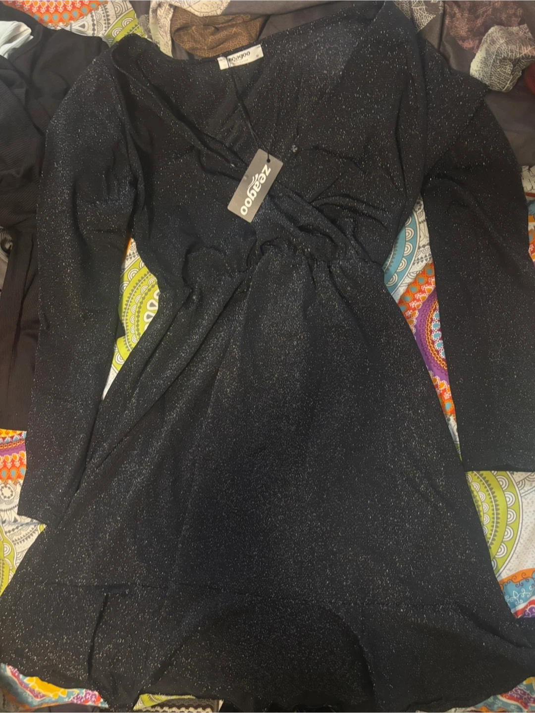 Selling a Zeagoo black sparkly dress in size M. It's in great condition and ready for a new home!