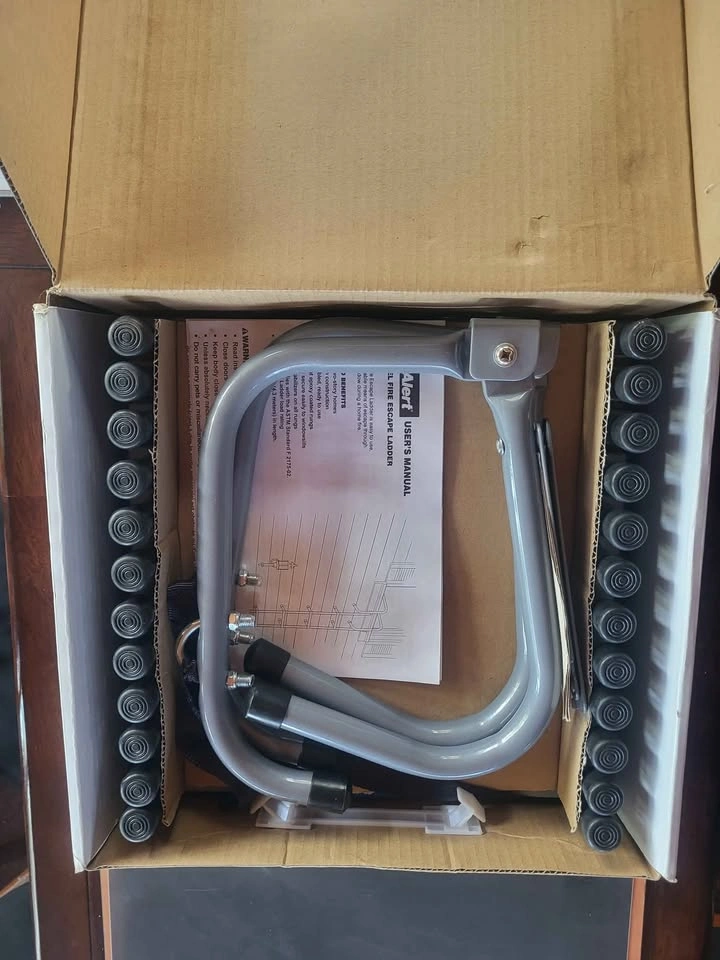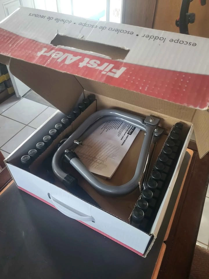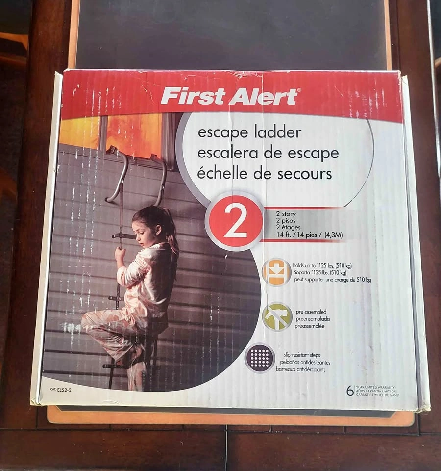 First.Alert escape ladder. Holds up to 1125 pounds. Pre assembled, new still in box unused. Let me know if you're interested!