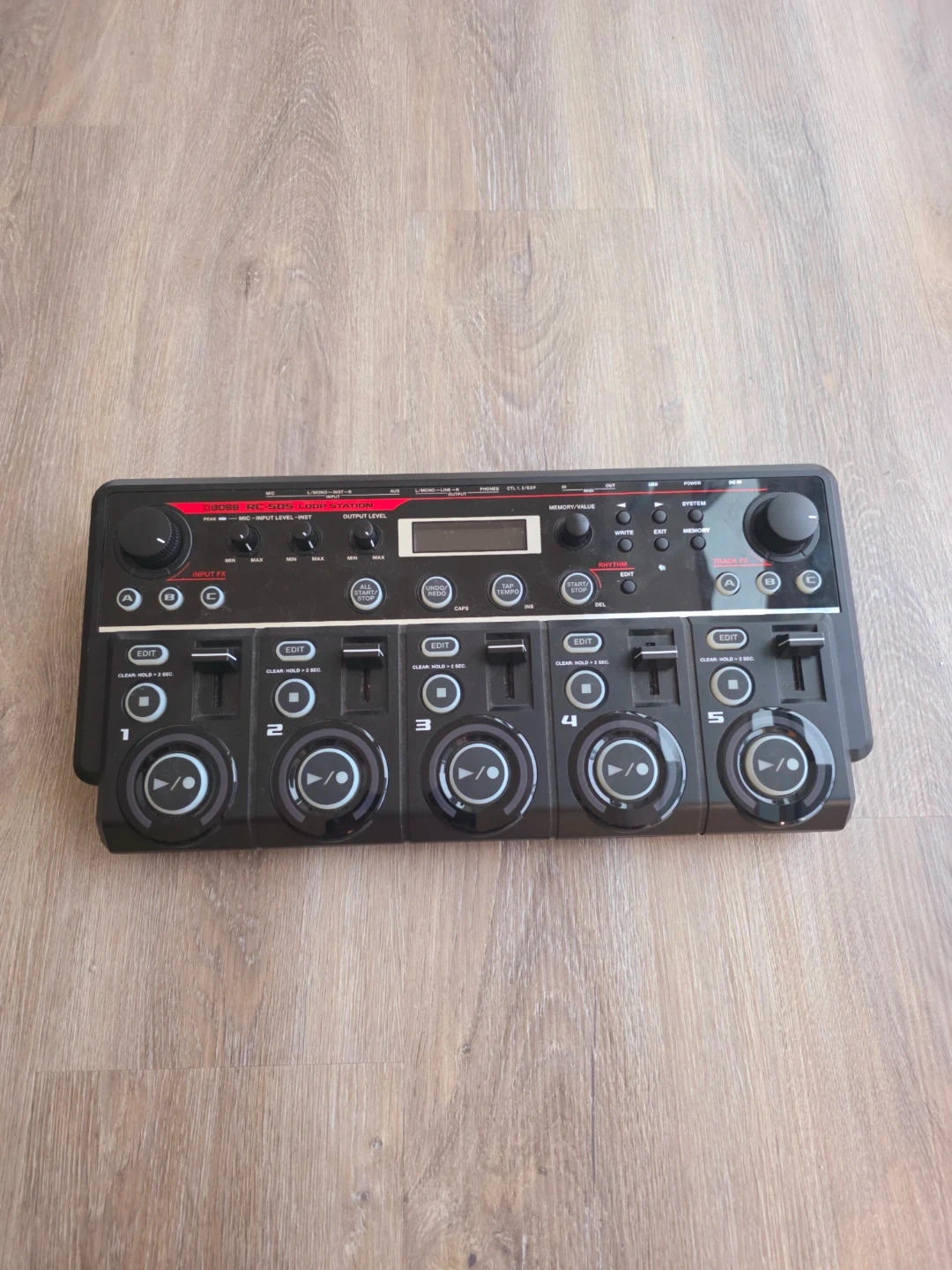 Independent Transport Controls: Dedicated record/play/stop buttons for each of the five tracks.