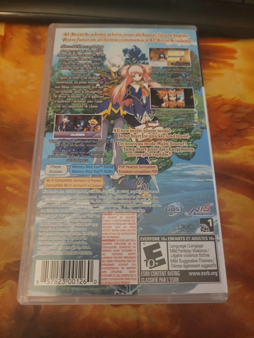 Selling Mana Khemia: Student Alliance for the PSP. It's in great shape and ready for a new player! Comes with the game and Al-Revis student handbook