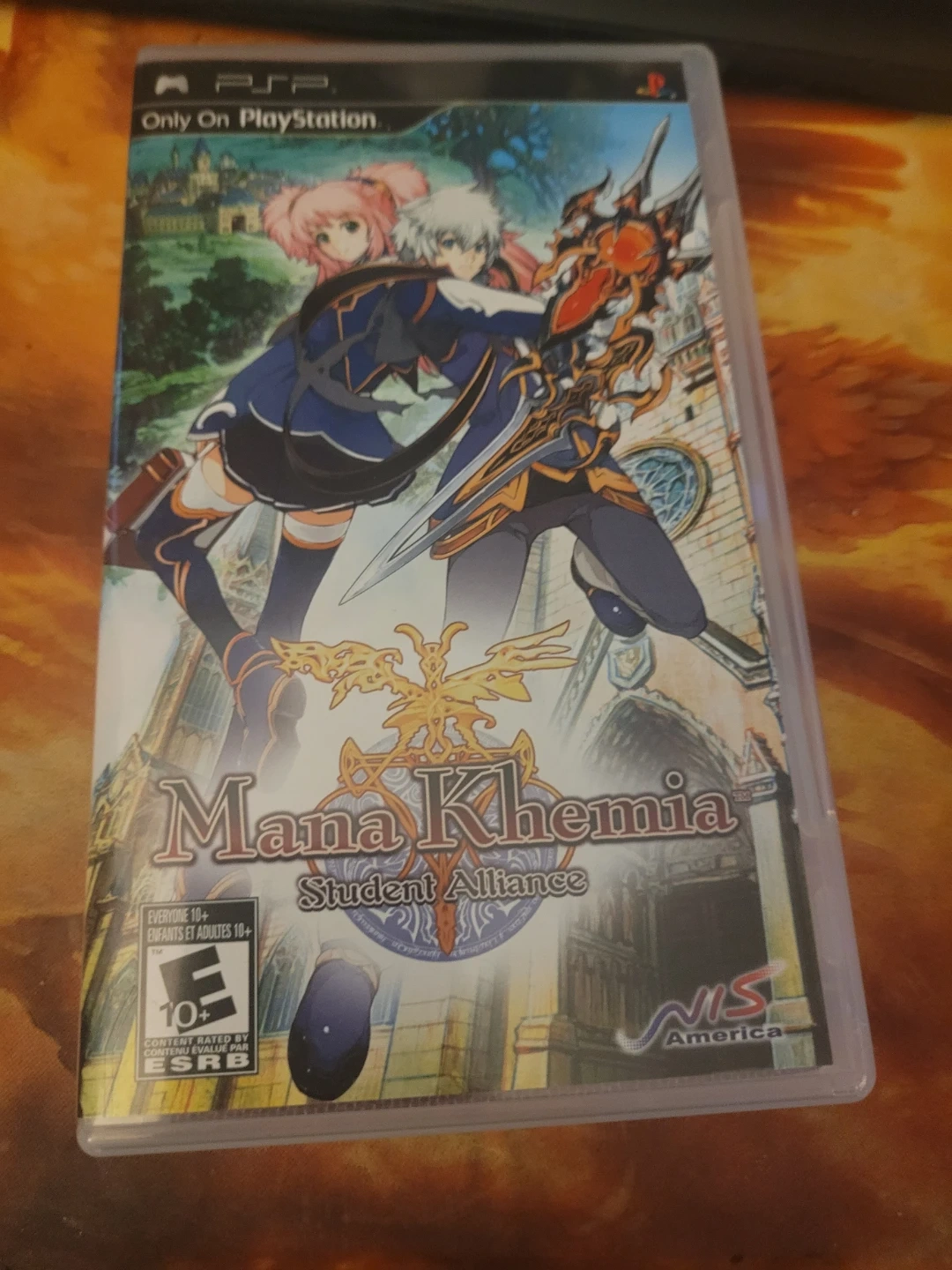 Selling Mana Khemia: Student Alliance for the PSP. It's in great shape and ready for a new player! Comes with the game and Al-Revis student handbook