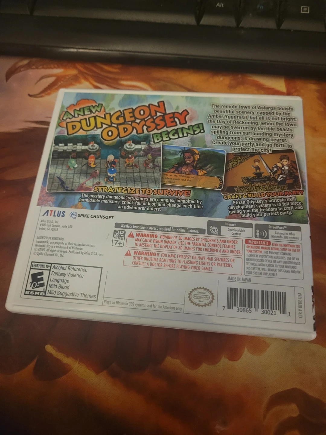 Selling Etrian Mystery Dungeon for the Nintendo 3DS! It's in great shape and ready for a new adventurer. Enjoy exploring dungeons in 2D and 3D modes (for ages 7+). Get ready to strategize and survive!