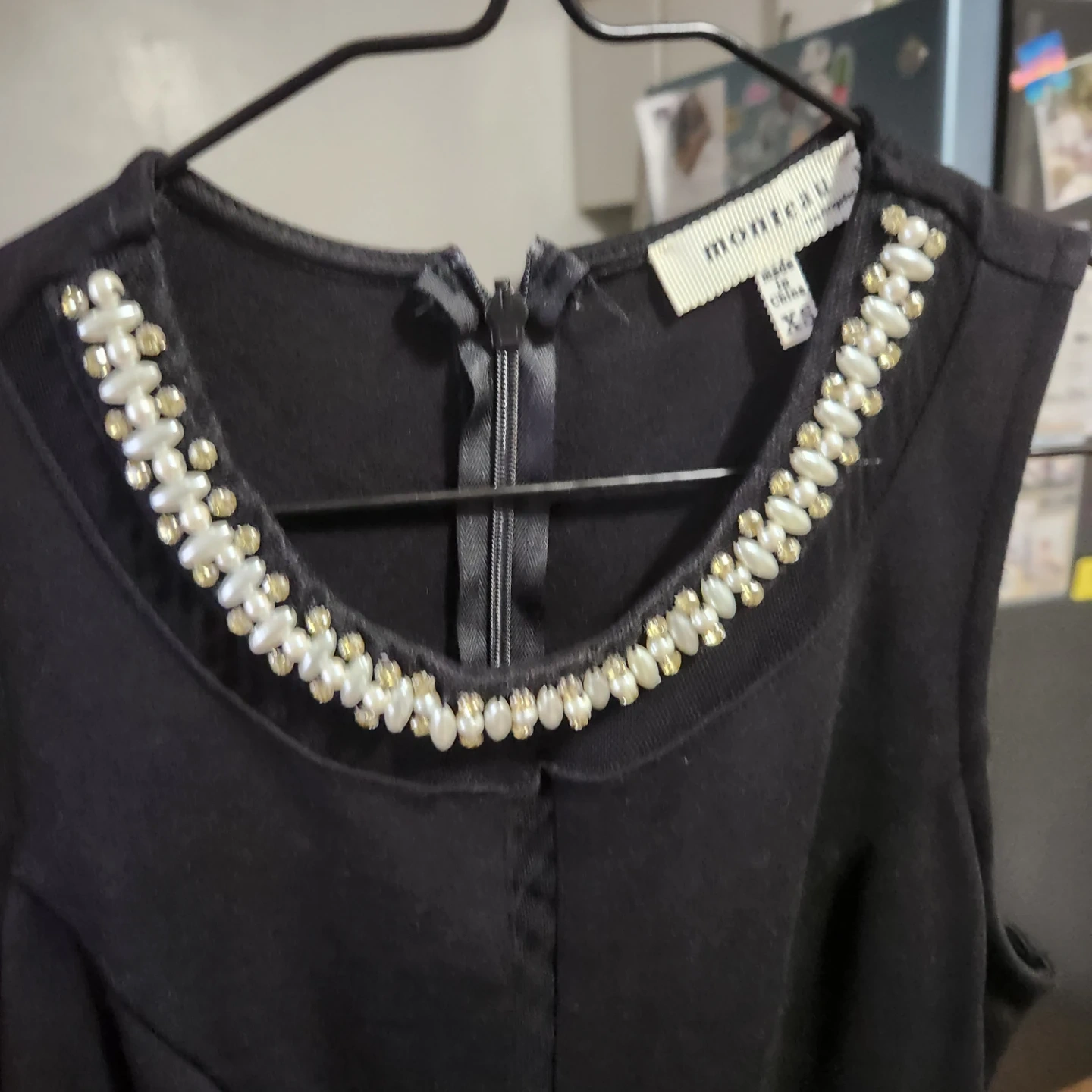 A cute Monteau black dress with pearl and rhinestone detailing around the neckline! It's a size XS and in great condition